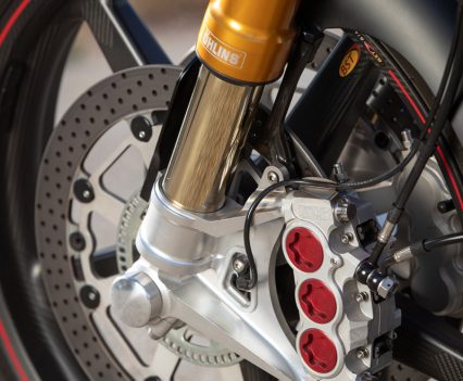 Some of the changes – like the re-designed rear mudguard, or fender as they say in California – have been forced upon the team to meet Euro 4 homologation. Other components have been changed or tweaked to improve the handling and performance or simply to add aesthetic value. Some do all three. Check out the lovely five-spoke carbon wheels and new ‘race-inspired’ billet aluminium swingarm, which increases rigidity and reduces weight compared to the old arm.