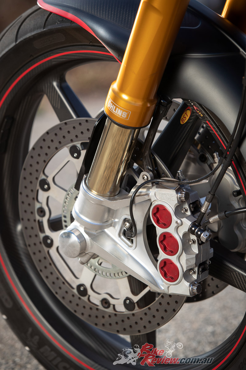 Brakes: 320mm disc (f), six-piston ISR radial-mount caliper, 240mm disc (r), four-piston ISR caliper, Bosch ABS.