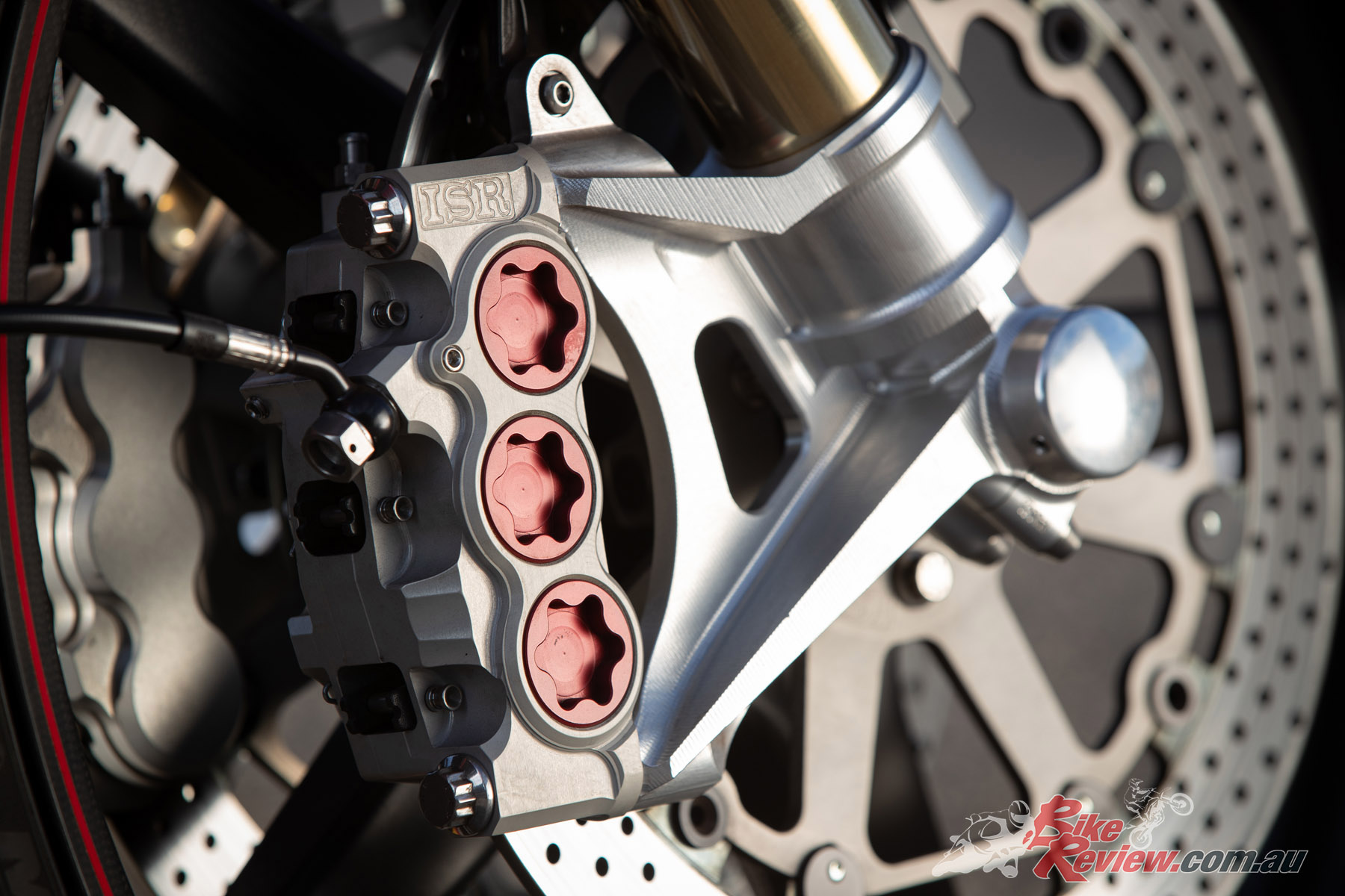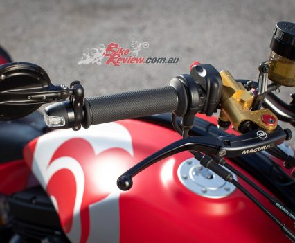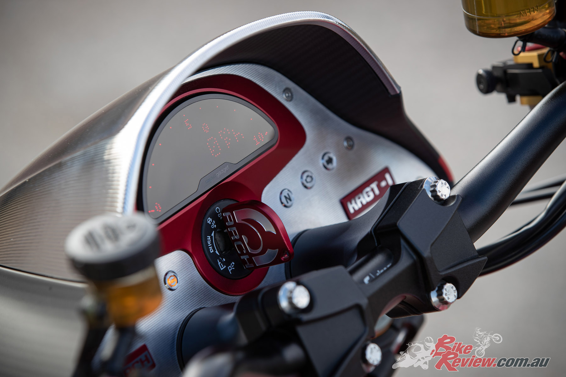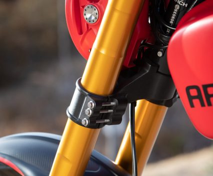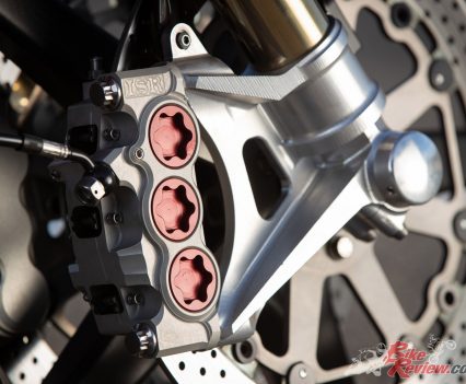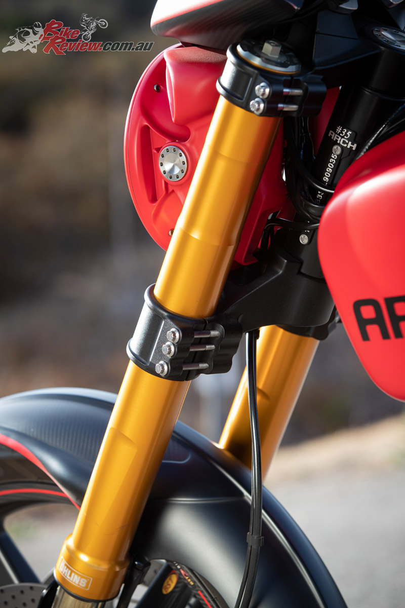 The longer you gaze at the ARCH the more you notice the changes and appreciate the craftsmanship behind it. There is billet aluminium everywhere – 540kg of aluminium is used to produce one bike. The in-house machined side plates are lovely, equally so are the fork bottoms that accommodate the six-piston ISR monobloc calipers ($2200 AUD per side). From the tailored seat to the Magura levers, which are $1400 AUD per lever, every detail has been thought about to a Rolex level of detail and precision. And everything is CNC machined in-house, with some items requiring more than 15 hours of machine time alone.