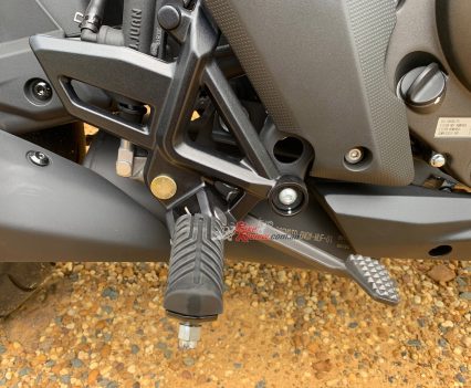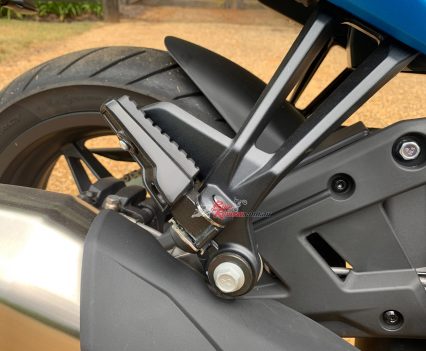 With a good feel for the well up to temperature Metzeler hoops (the front Roadtec is made in China), I am into it straight away, grinding out a footpeg on my first pass. Ground clearance is not MotoGP-like but it is on par with most sports-tourers and touching down, the bike is well and truly cranked over enough for the roads, with plenty of tyre in reserve for an emergency.