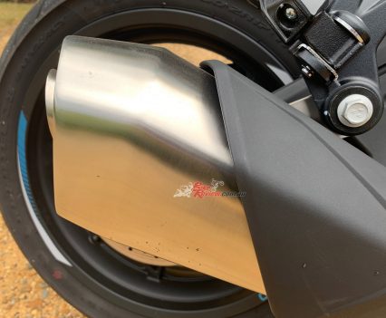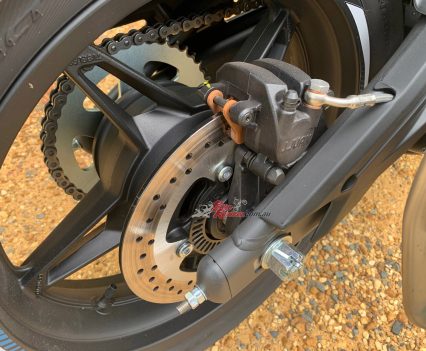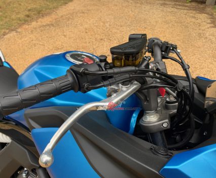 On the picks into corners the GT is a little spaghetti-like, so I revert to the old school classic style again of upright braking and smooth cornering. The brakes start to fade and the lever begins to get closer to the grip so I slow up for a while and let them cool. I’ve been braking hard, so it is a big test for the brakes, but they should be more powerful regardless.
