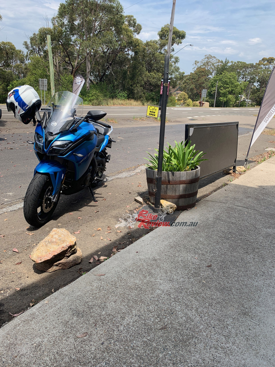 After my caffein fix I head for the M1 from the foreshore. After another 15-minutes of urban riding I’m at home on the GT and good to go but the weight and positioning of it, particularly with a full load of fuel, is something the new rider might take some time to get confident with. Definitely not a deal breaker though and once above 30km/h, there is no issue.