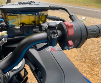 As the clouds come in and the sky darkens, the TFT dash lights up and looks bright and clear. For most of the ride, I’ve been unable to read it clearly as sunlight effects it, dulling it down. There are two modes of display, Sport and Touring, but I prefer the Touring mode. It’s a nice touch and has all of the usual info you get these days, however, is not as high spec as some TFT units.