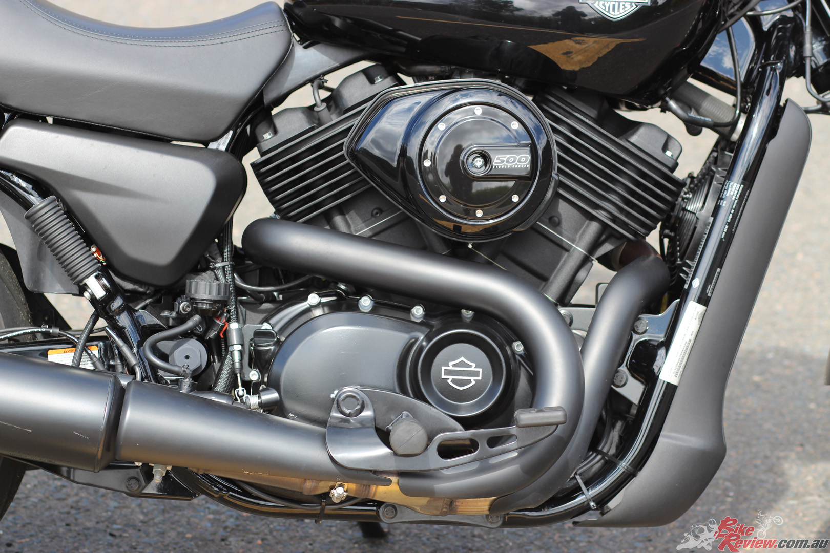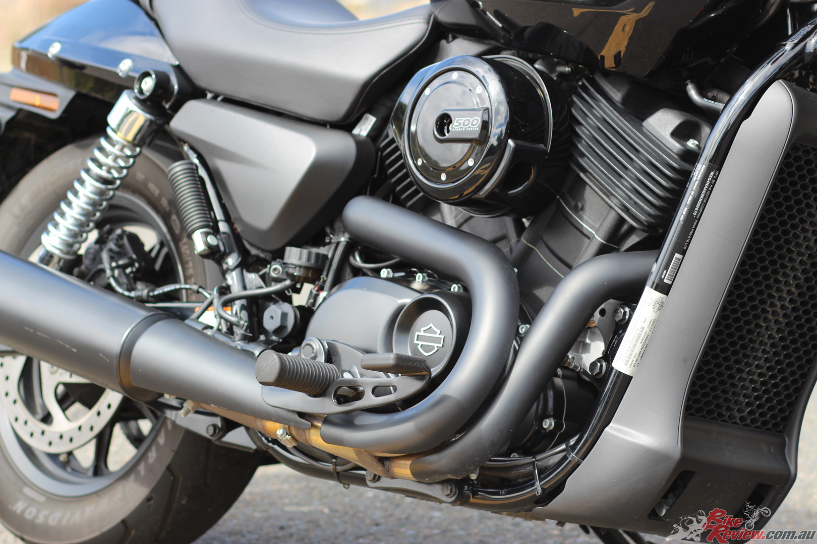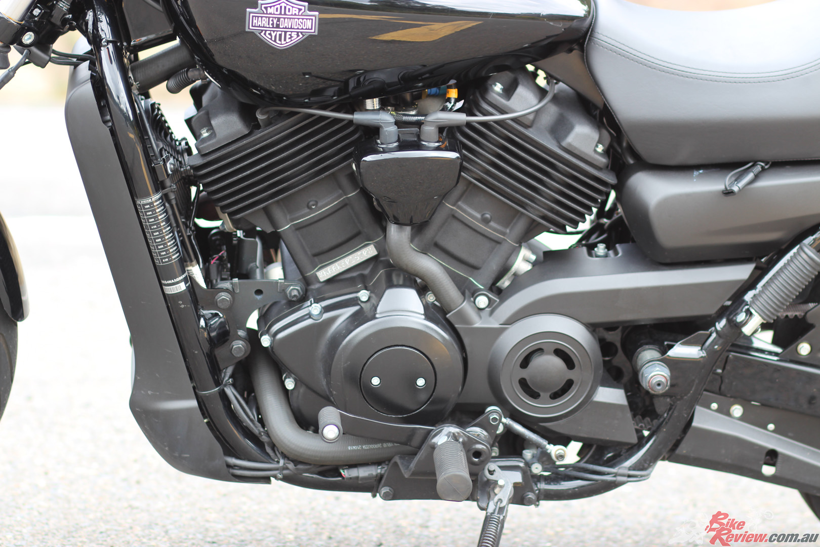 On the Street 500 LAMS offering Harley-Davidson introduced the Revolution X 60-degree V-twin, with a capacity of 494cc and four-valves per cylinder, offering a refined liquid-cooled powerplant, with 41Nm of torque. Matched with a six-speed gearbox and belt final drive for low maintenance, the engine is finished in Wrinkle Black and features black covers.