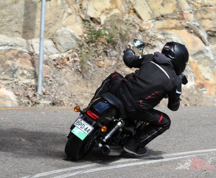 When I first rode the Street 500 I thought that the handling was awkward. The front-end felt heavy and the bike would wallow at slow speeds, but this issue seemed to correct itself after picking up a bit of pace. Once we were up and going, the big open road was where the bike shined best, where the Street 500 proved to be really stable and soaked up much of the bumps in the road. But with my 183cm tall frame, I just wish the ‘pegs were out in front a little bit more. It does get a bit cramped in the saddle and having the ability to kick out my legs would’ve been much better.