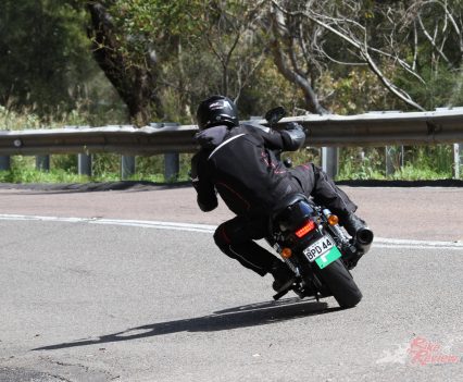 Backroad performance and handling on the twists was obviously not it’s strong point, with very little ground clearance which saw me scraping pegs on pretty much every corner with little speed. There isn’t too much initial bite in the brakes, with a comfortable amount of power and ABS which learners will definitely appreciate. Engine braking isn’t overly aggressive either and I never had the rear lock up on me which is definitely a plus. The tyres a nice and grippy in both the wet and dry, and feel as though they have a gradual turn in and becomes more sudden as you lean in.
