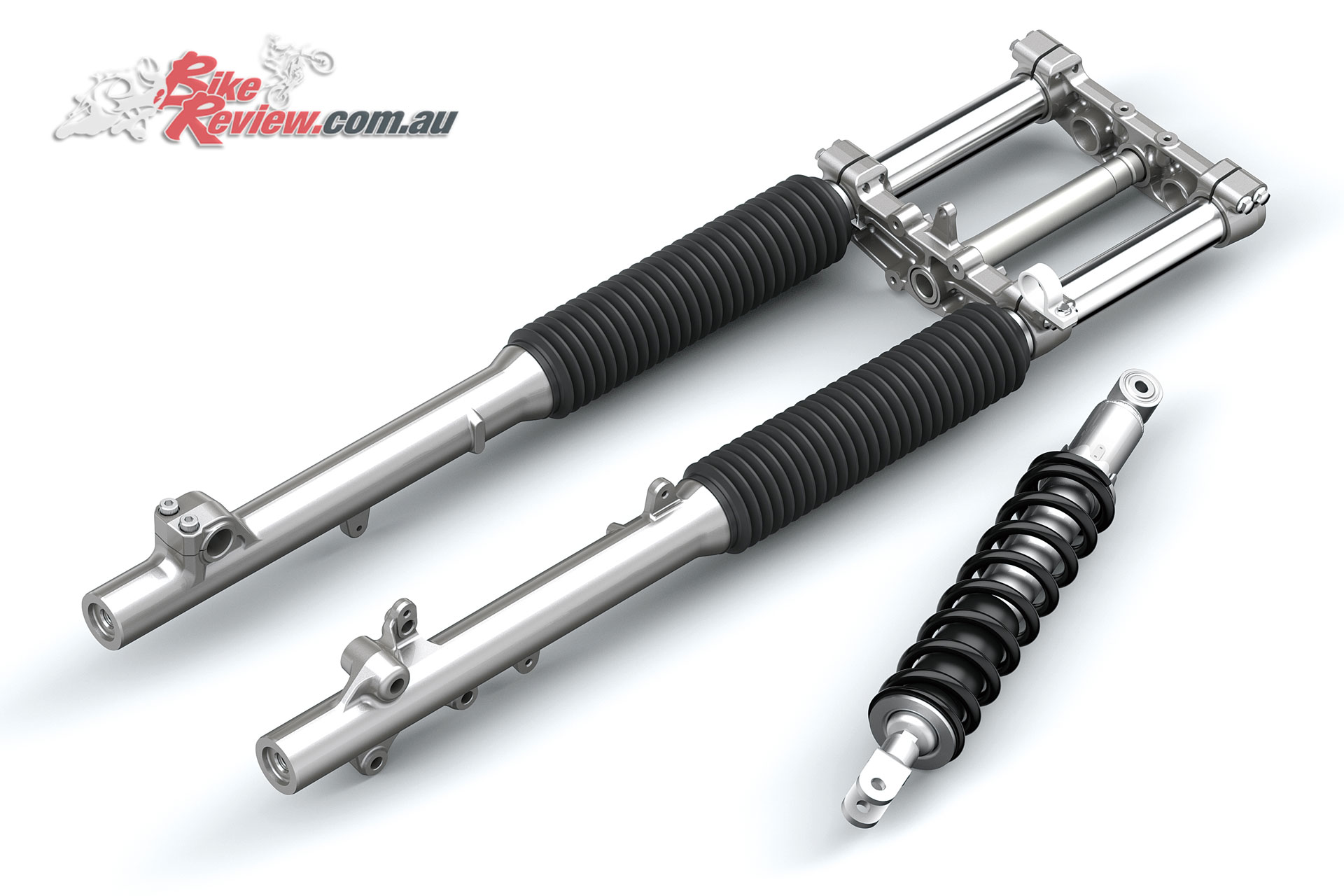 Suspension: 37mm telecopic fork, 220mm travel, Uni-Trak swingarm shock with preload adjustability, 223mm travel