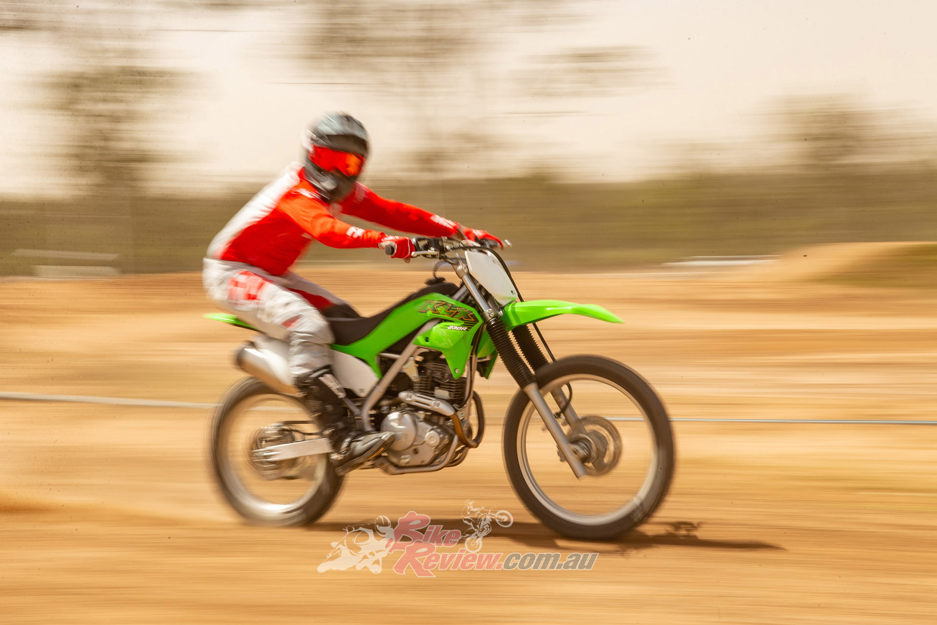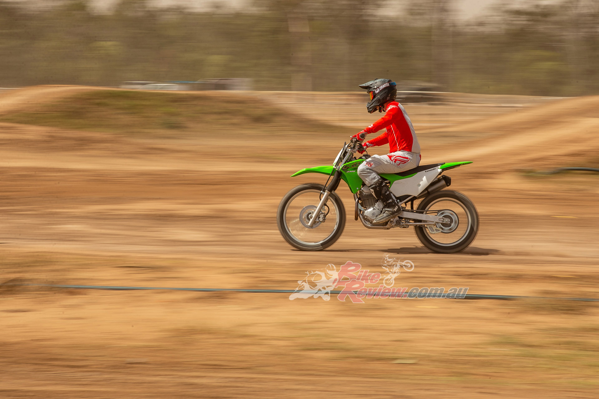 The KLX230R is not just a fun bike, it could be useful on a farm or as a trail bike, it is handy as a bush run-around and even has a side stand. All up, a fantastic little bike, lots of fun and great value.