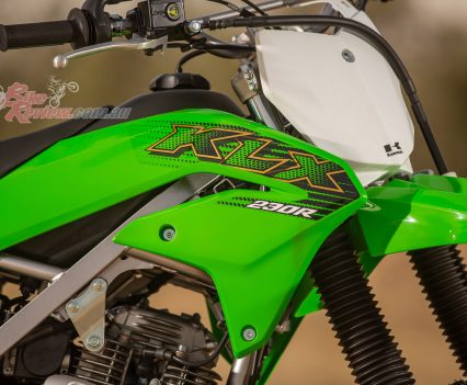 Kawasaki have designed the KLX230R from the ground up to be ‘fun in the dirt’, an entry-level off-road bike that is aimed directly at people wanting to get off road and get into riding dirt bikes. Check our full detailed KLX230R tech feature here. With a seat height of 925mm the KLX230R is best suited to a new rider but can be used right through to the experience rider looking for a bit of fun without stepping in the arena of a full-on race bike like the KX250. The KLX230R is fun, manoeuvrable, forgiving and a powerful play bike for anyone.