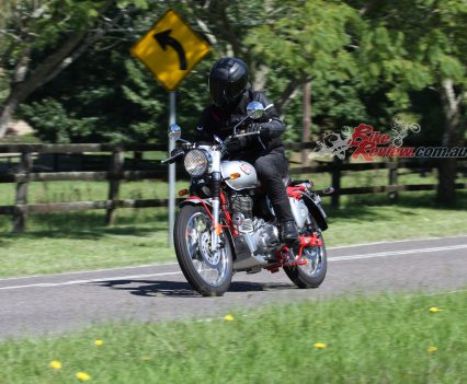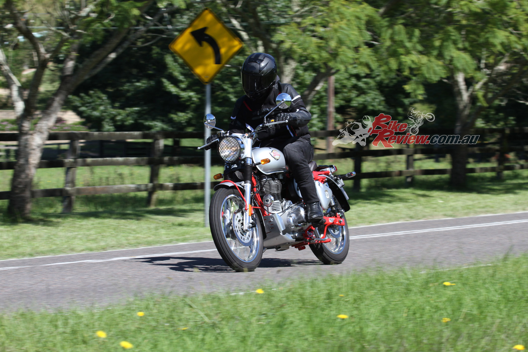 Brakes wise, they are good, with not too much initial bite but and not too much power but are comfortable to use and great for learners. You can experience some wobble when getting hard on the brakes, possibly due to the Bullet’s skinny tyres, but that was never an issue. The bike feels otherwise stable over some of the bumpiest roads, with minor movement from the front on occasion.