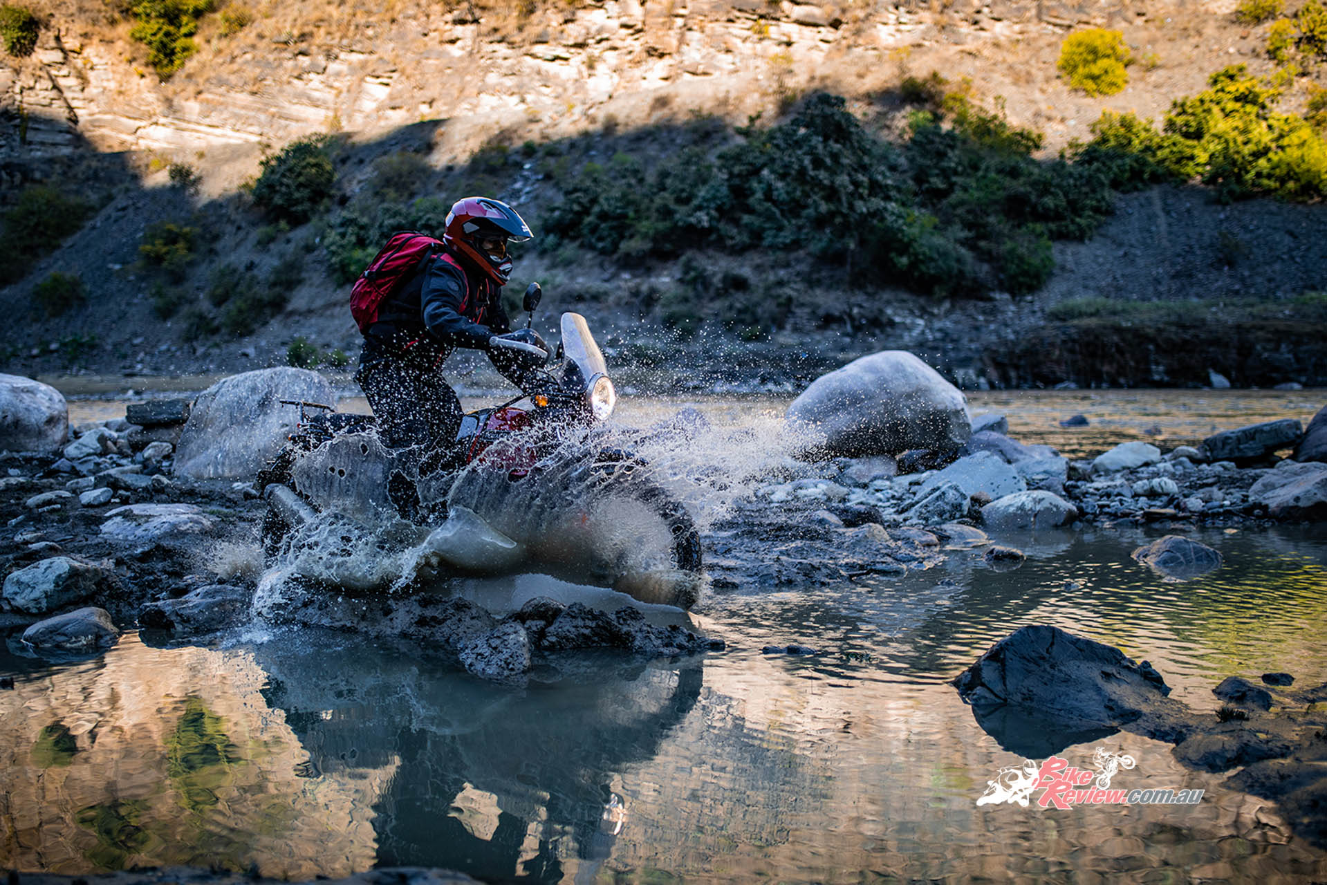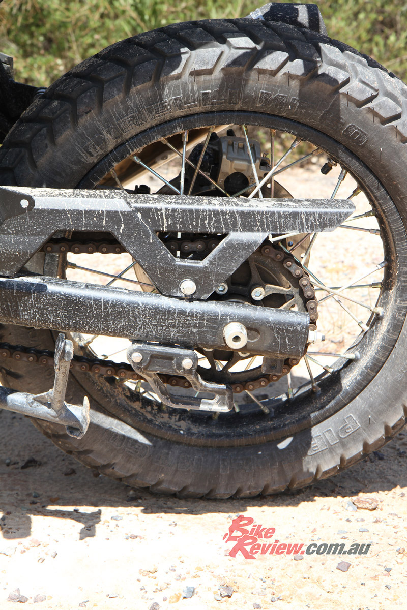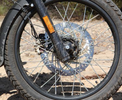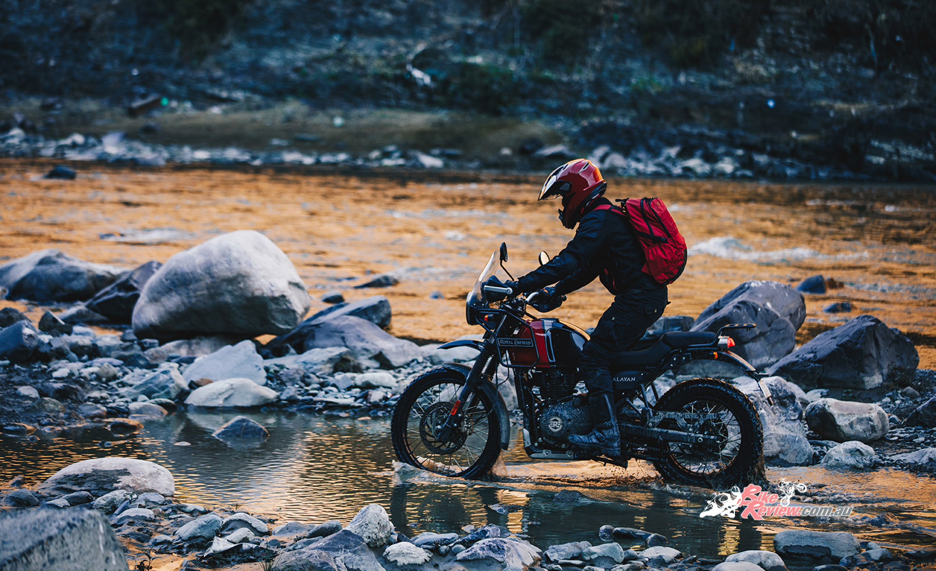 With 200mm travel up front and 180mm at the rear, and 220mm ground clearance, the Himalayan is suited to dirt roads at medium speeds and single trail exploration. It is amazing where it will go. Just don’t rush.