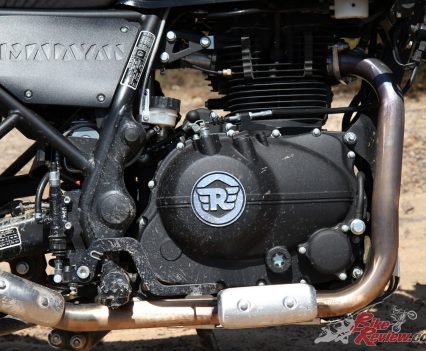 The Himalayan is powered by the Royal Enfield LS 410 engine, which is 411cc and produces just 24hp@6500rpm and 32Nm@4000rpm. It has a five-speed wide-ratio gearbox, is a SOHC oil/air-cooled unit and aside from the EFI, is about as basic as they come for an engine.