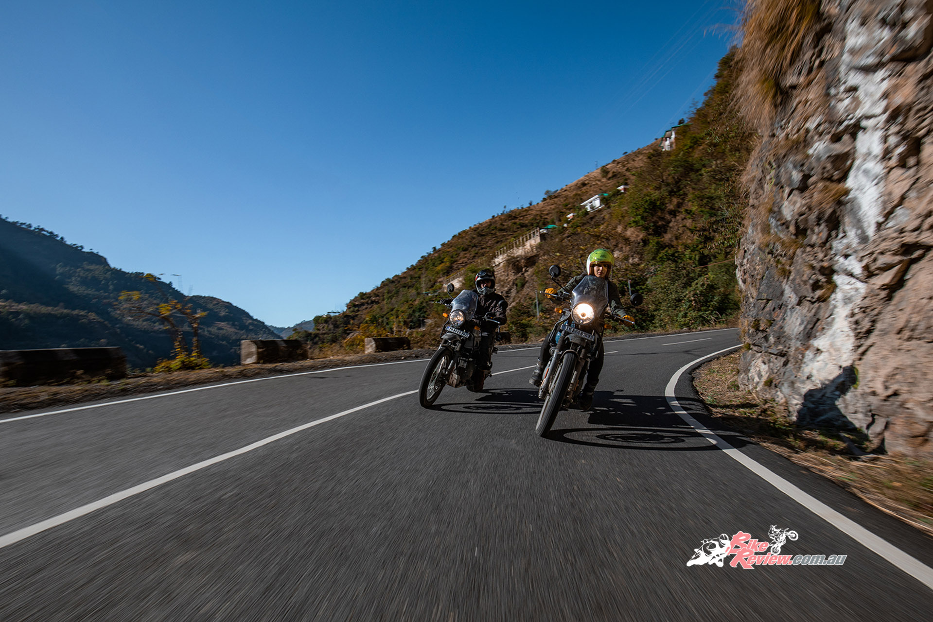 The sweet motor is rewarding between 4000 and 5000rpm, amazing for just 24hp output. The Himalayan is a really enjoyable, basic bike to explore the hills on.
