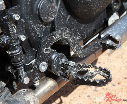 The suspension is soaking up most of the irregularities. The front is particularly good, while at the back, 180mm of travel is still fairly limiting and bigger bumps bottom the back-end out with a whack. Stability is good though and the engine is tractable and enjoyable.