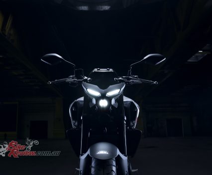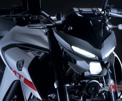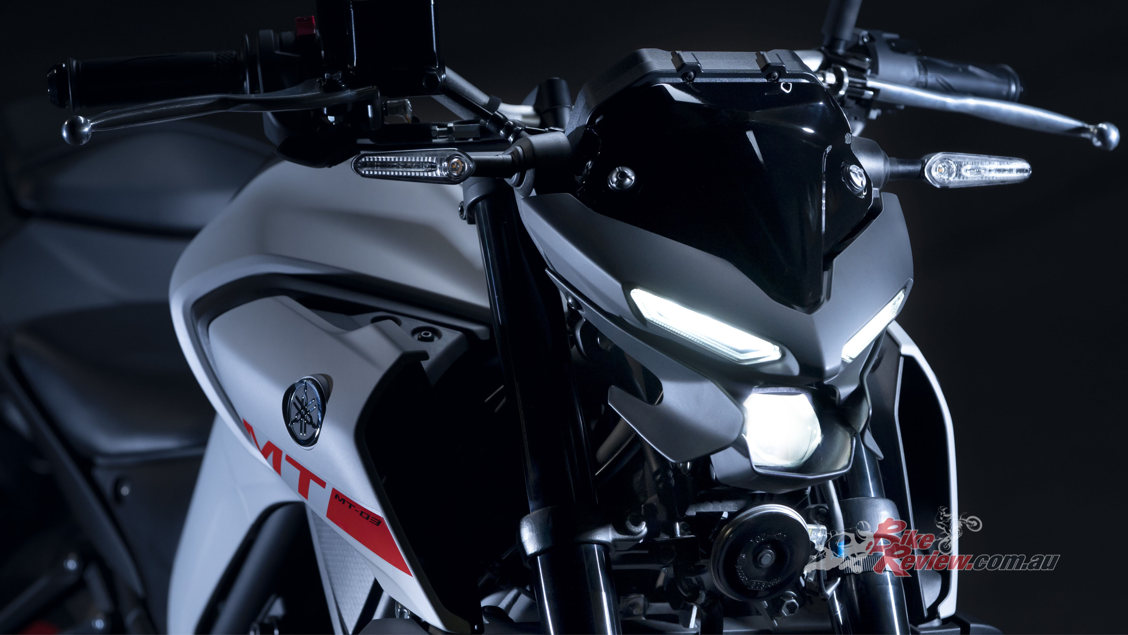 The aggressive headlamp design is one of the major changes to the MT-03 for this model year.