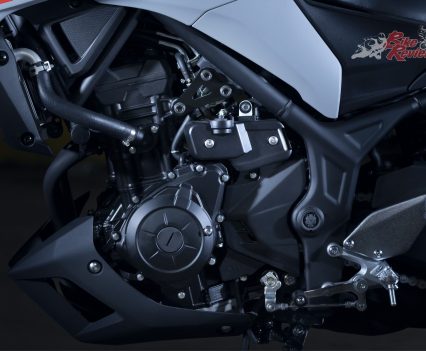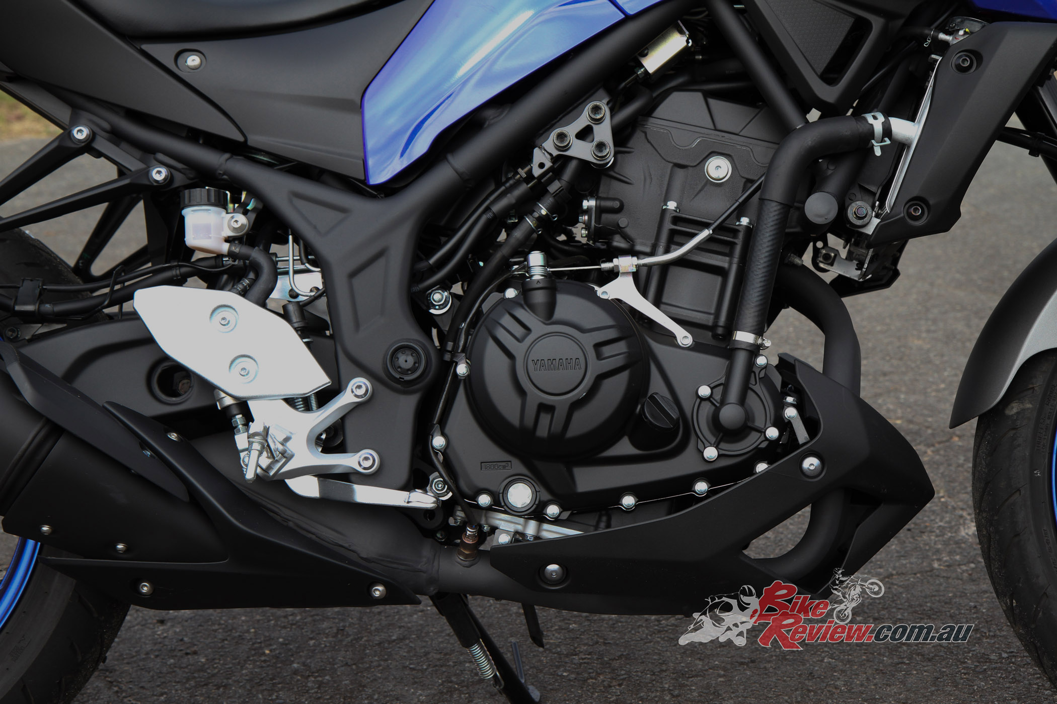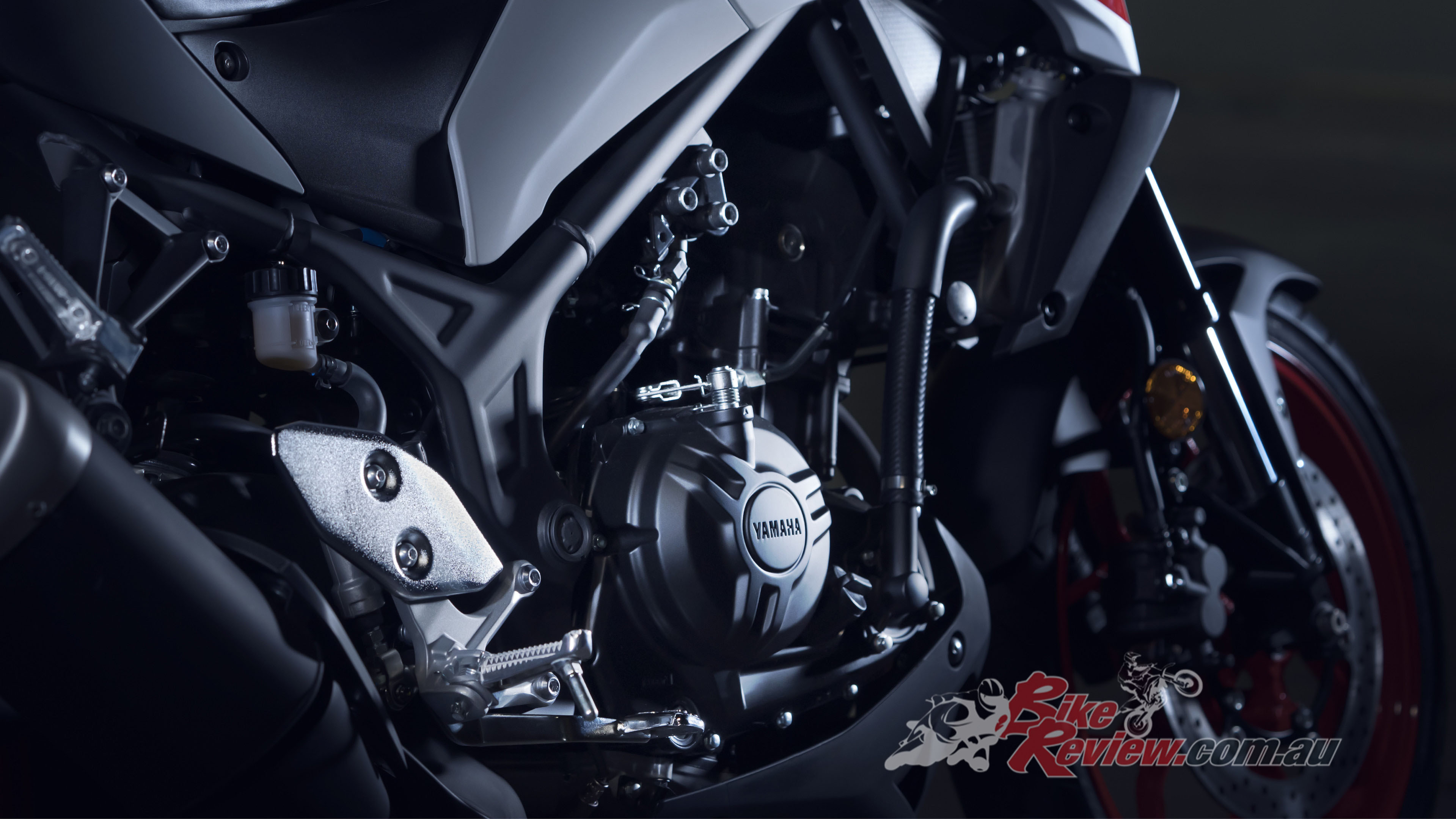 The compact and lightweight 321cc inline twin-cylinder engine has been developed from Yamaha’s multi-championship winning YZF-R3 sportsbike. The liquid-cooled DOHC four-valve CP2 engine features a 180-degree crank and integrated counterbalancer to deliver excellent vibration-free power and responsive torque characteristics.