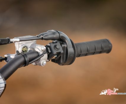 It feels as though the relatively smaller hit of torque when you crack the throttle means you can’t instantly preload the shock on the face of a jump, so while you can still launch it if you have a bit of a run up, it’s definitely harder to get as much air when you come out of a blind corner and try to launch it off a small jump for a bit of fun.