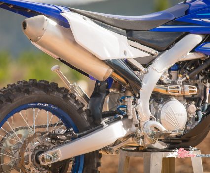 The 2020 Yamaha WR250F runs with an 18-inch rear wheel, allowing for a wide range of tyre fitment.