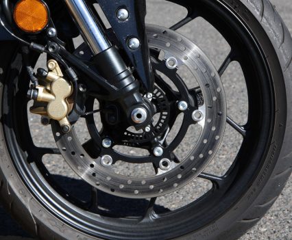 Brakes: ABS, single 298mm floating rotor, two-piston caliper (f), single 220mm rear rotor, single-piston caliper (r)