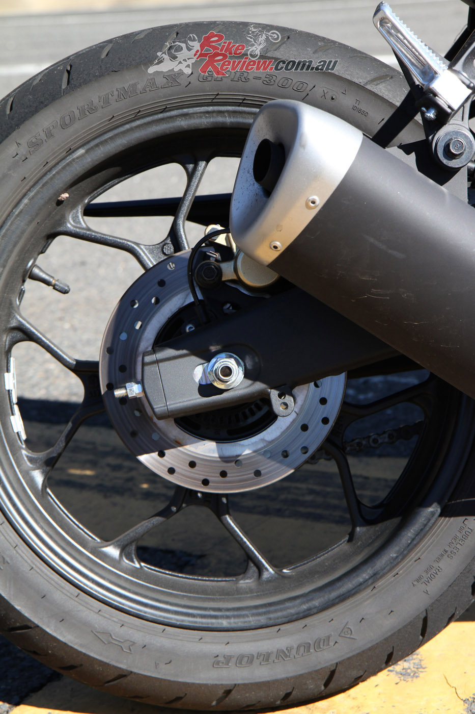 Wheels & Tyres: Cast aluminium 10-spoke, Dunlop Sportmax GPR-300 , 110/70–17in (f), 140/70–17in (r)