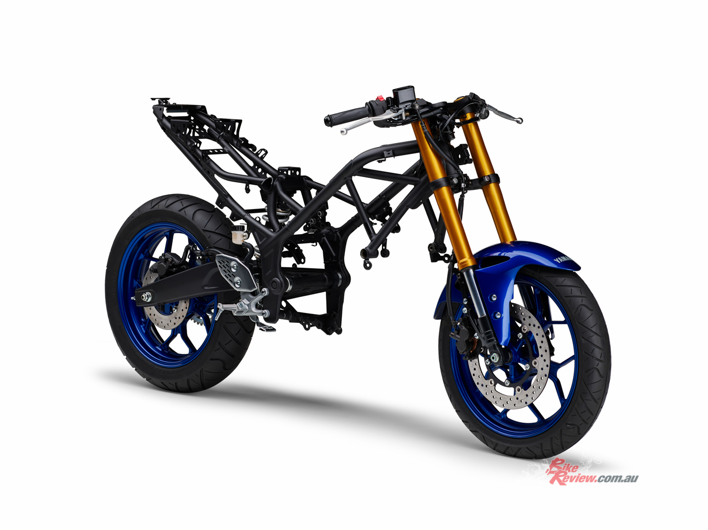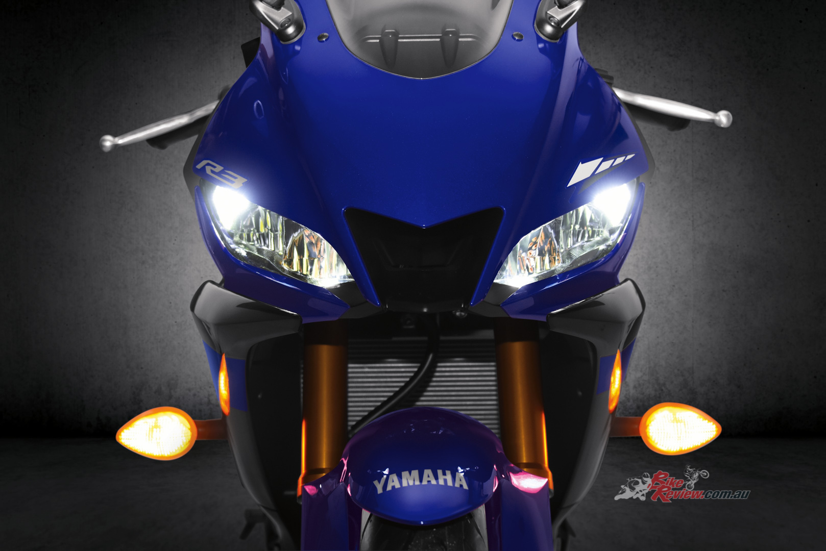 The YZF-R3 features an inverted fork with optimised spring and damping settings, significantly improving fork rigidity, front-end feedback and control feel. The design also includes a YZR-M1-inspired top clamp for improved supersports style.