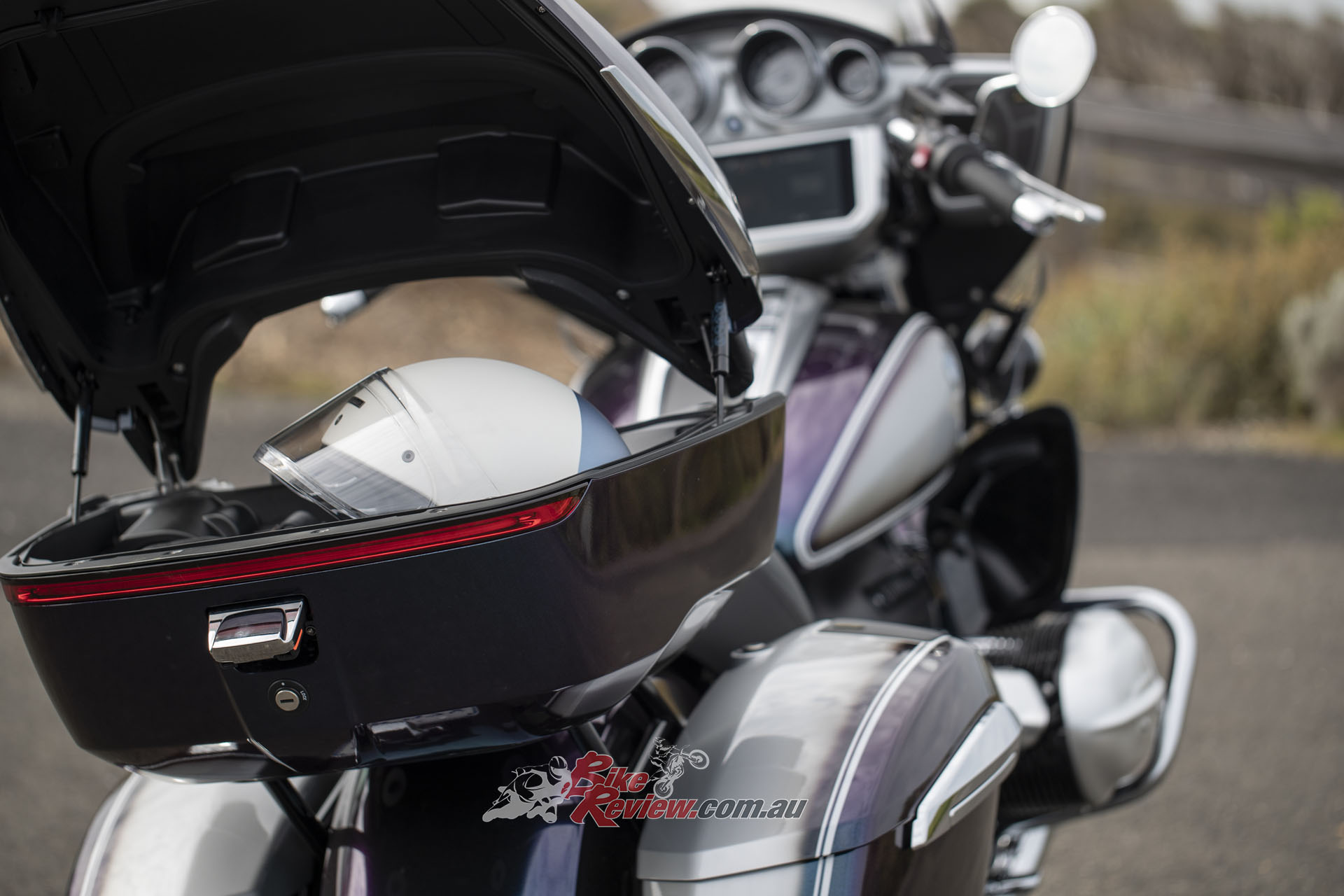 Combined with a seat height of 720mm, getting your feet flat footed to the ground at a stop is easily achievable. It’s worth noting all Australian models also feature reverse gear and hill start control as standard, for easier manoeuvrability. Luggage capacity is good without being exceptional. The top box (47-litres) has enough room to fit one full faced helmet, while the side panniers aren’t quiet as spacious as some of BMW’s competitors, but are adequate.