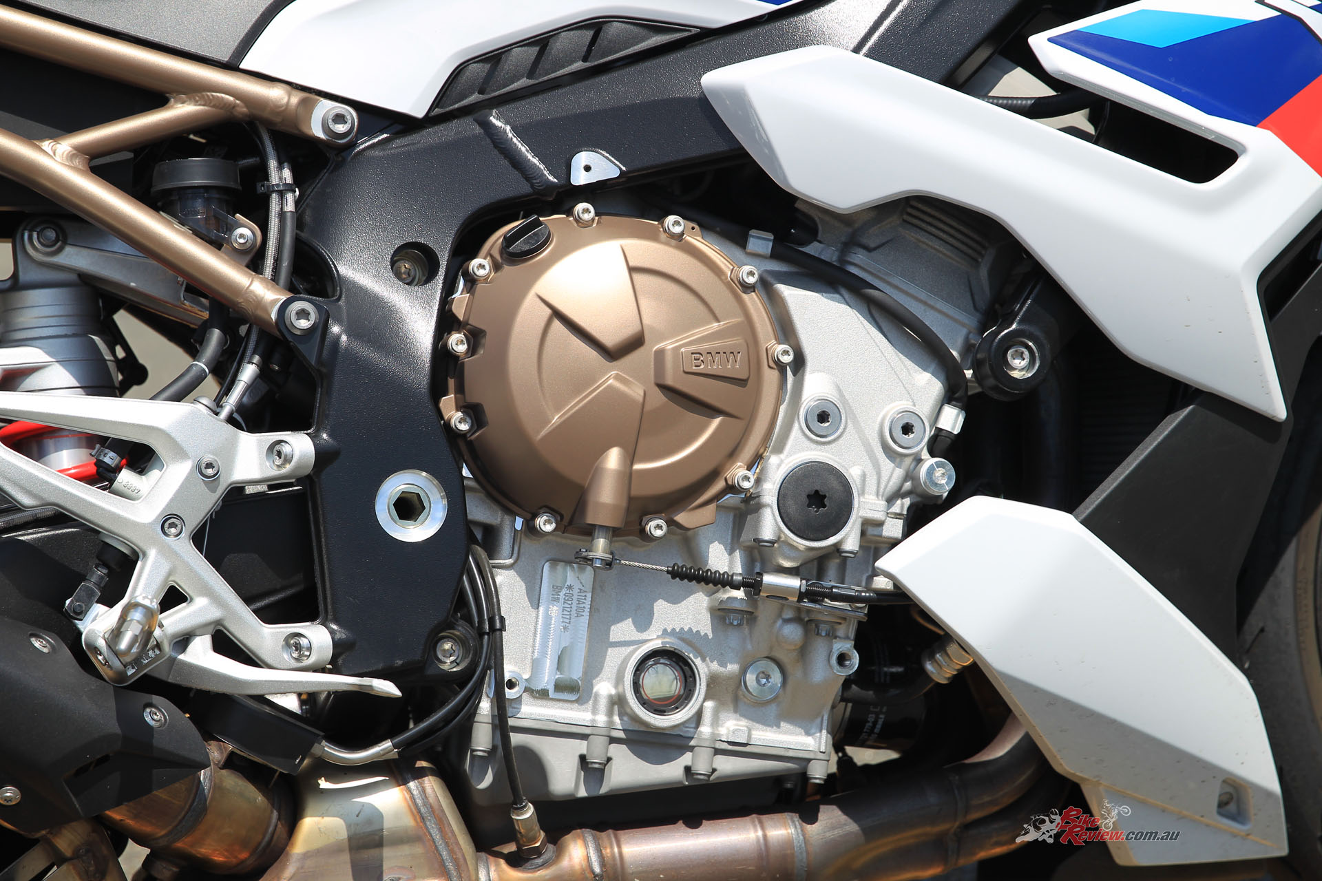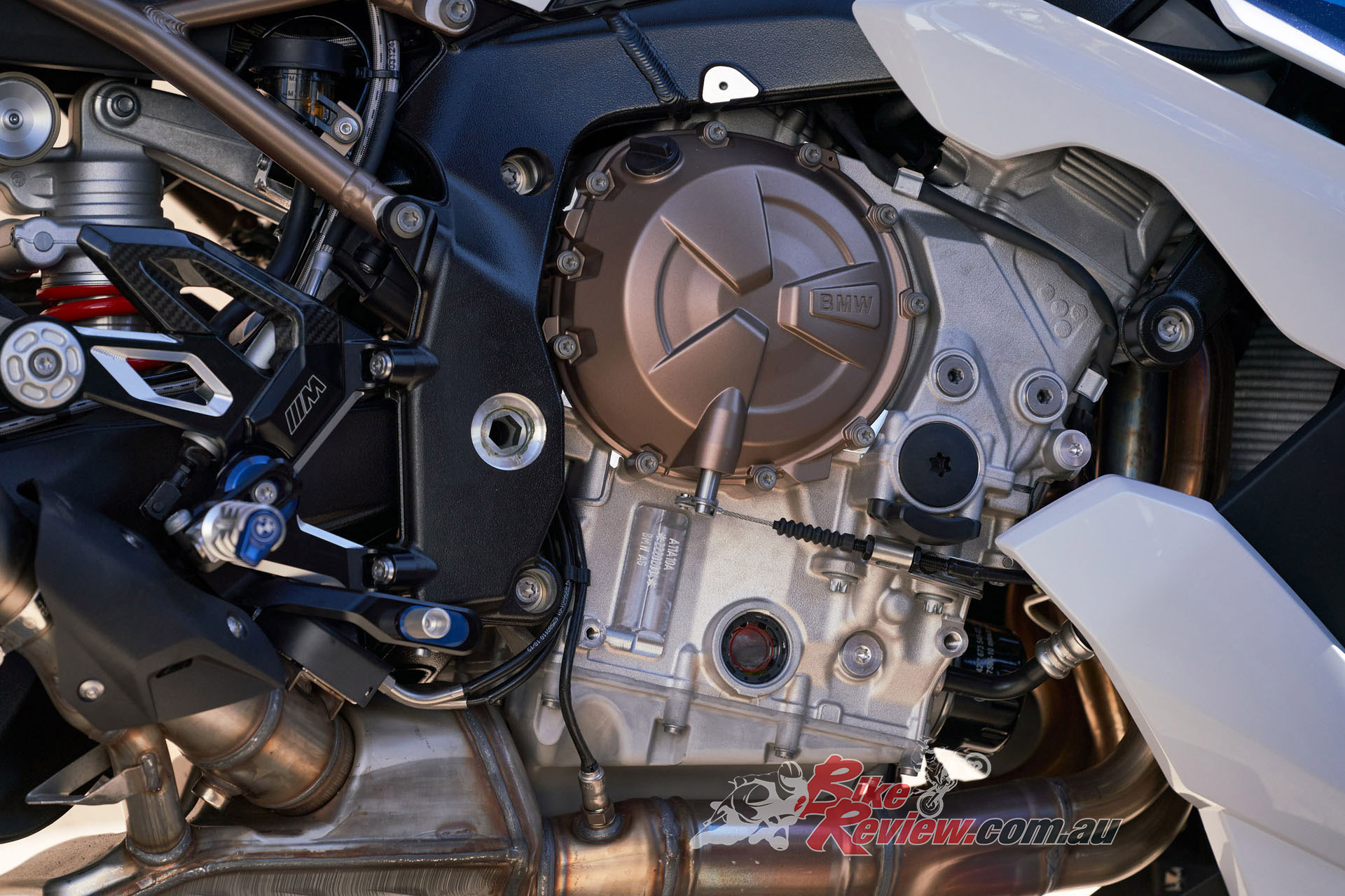 Engine: Liquid-cooled in-line four-cylinder engine, 999cc, DOHC, 80 x 49.7mm bore x stroke, 12.5:1 compression ratio, valve activation via individual rocker arms, variable intake camshaft control system BMW ShiftCam, Gearbox: Constant mesh six-speed with quickshifter Clutch: Self-reinforcing multi-plate anti-hopping wet clutch, 525 chain 17/45 gearing.