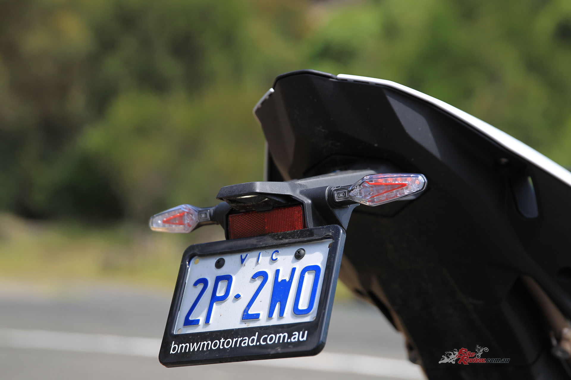The rear turn indicators have been adopted from the S 1000 RR and feature an integrated tail/brake light function. Enhanced safety when riding at night is ensured by the adaptive turning light, which is a component of Headlight Pro.
