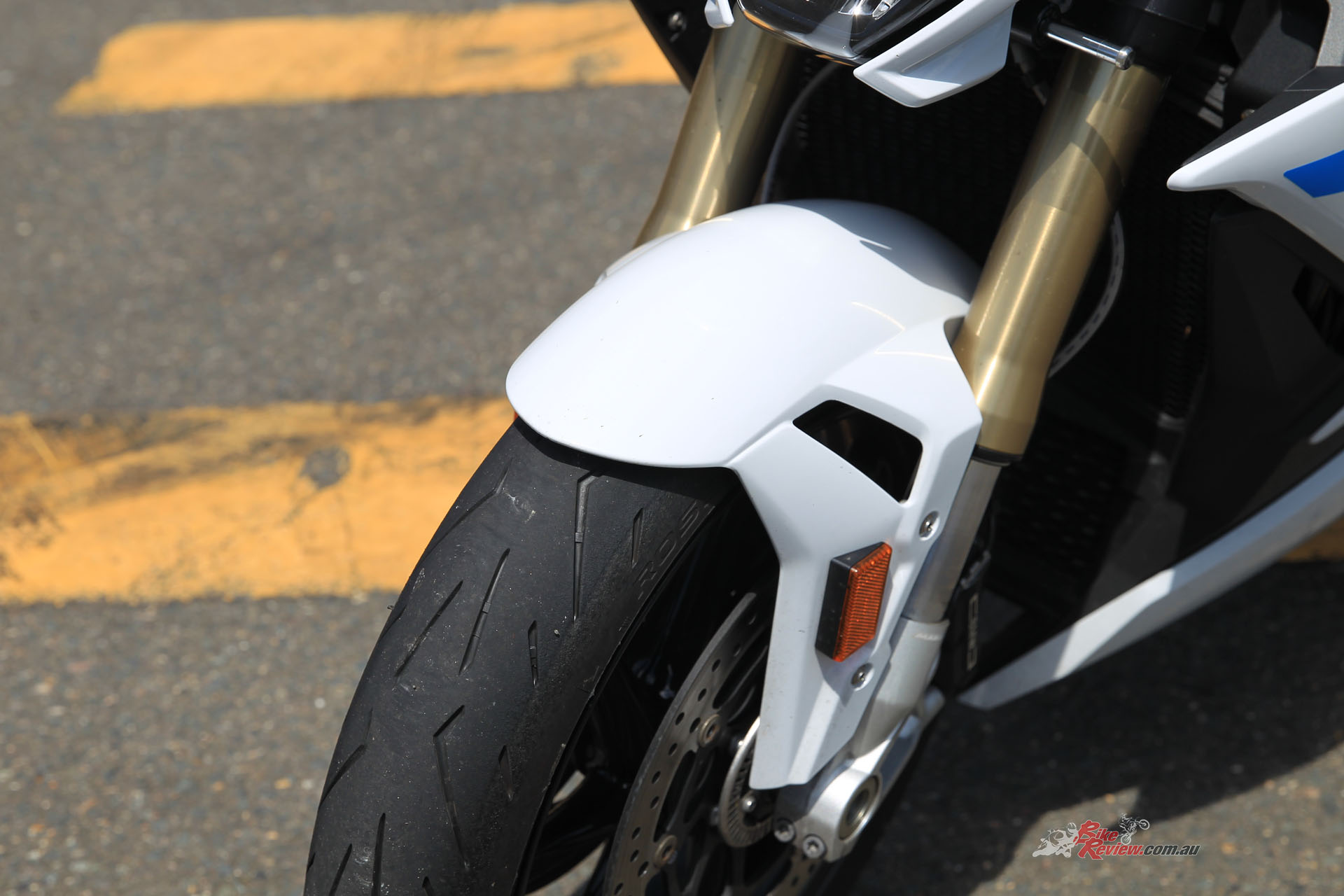 Braking is something BMW know how to do but on the latest S 1000 RR, the switch from Brembo to Hayes calipers was, in my opinion and experience on track, a backwards step. However, on the naked S 1000 R, in road sports conditions, I can’t fault the brakes. Despite only having a conventional master-cylinder not a radial-pull one, they have immediate but not intimidating initial bite, incredible power, and fairly good feel. Not top spec Brembo feel, but not too far off it.