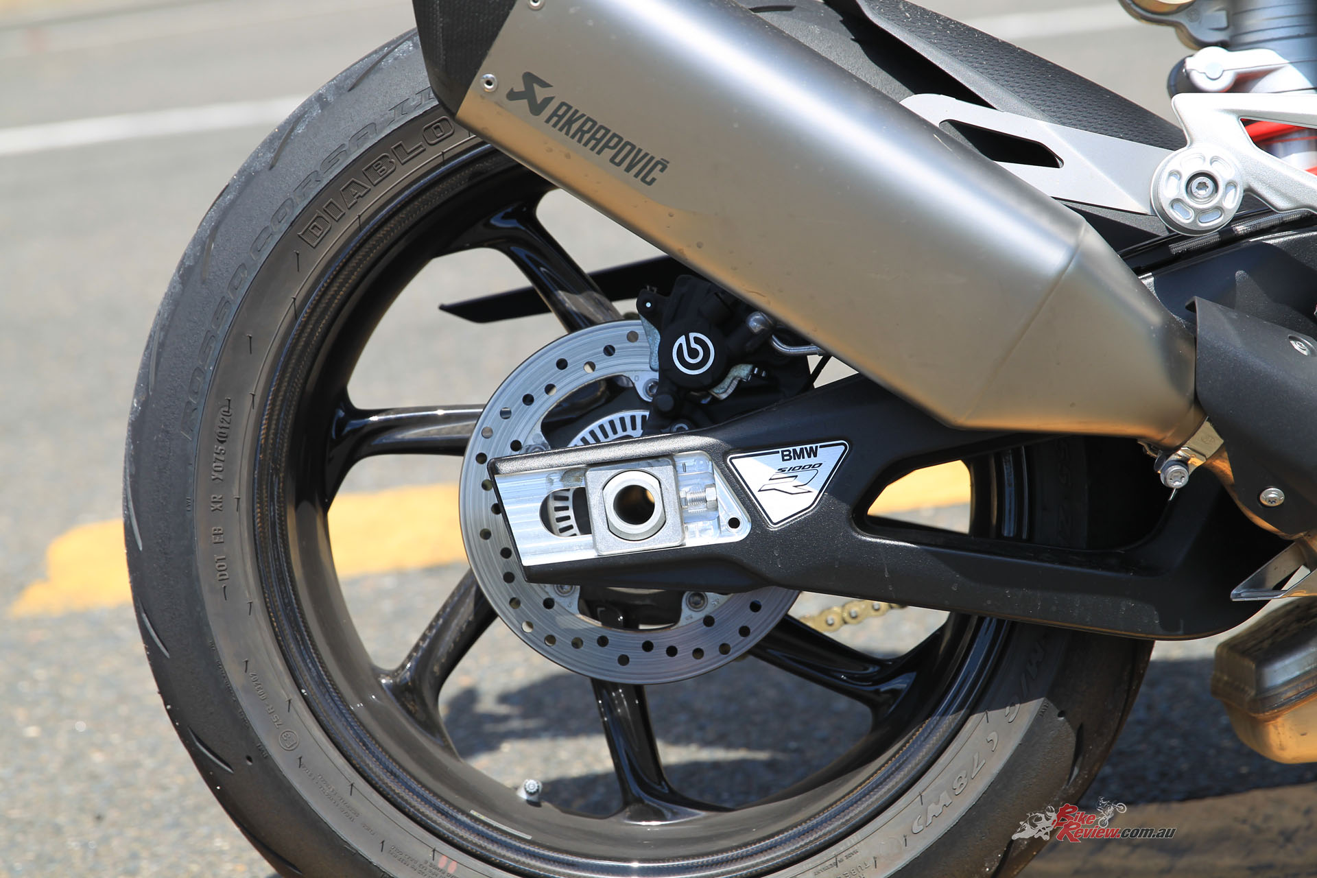 The new swingarm, shock position and linkage makes the rear of the S 1000 R hook up like it is glued to the road.