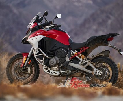 This latest Multistrada utilises a V4 powerplant rather than the V-twins of every previous Multi. The “Granturismo” engine architecture is based on the Panigale V4’s but with an abundance of tweaks to transform it into a powerplant optimised for sport-touring work and even off-roading. As in the Panigale, the Multi uses a monocoque-style aluminium frame rather than Ducati’s trellis framework.