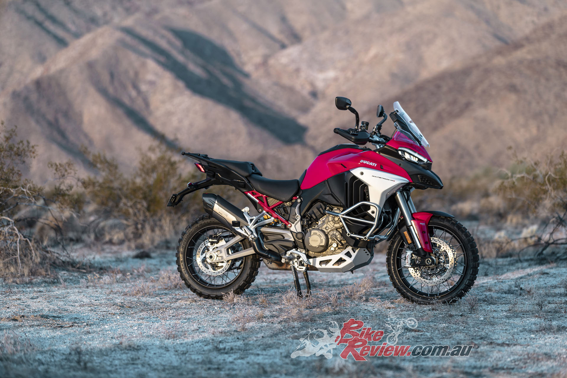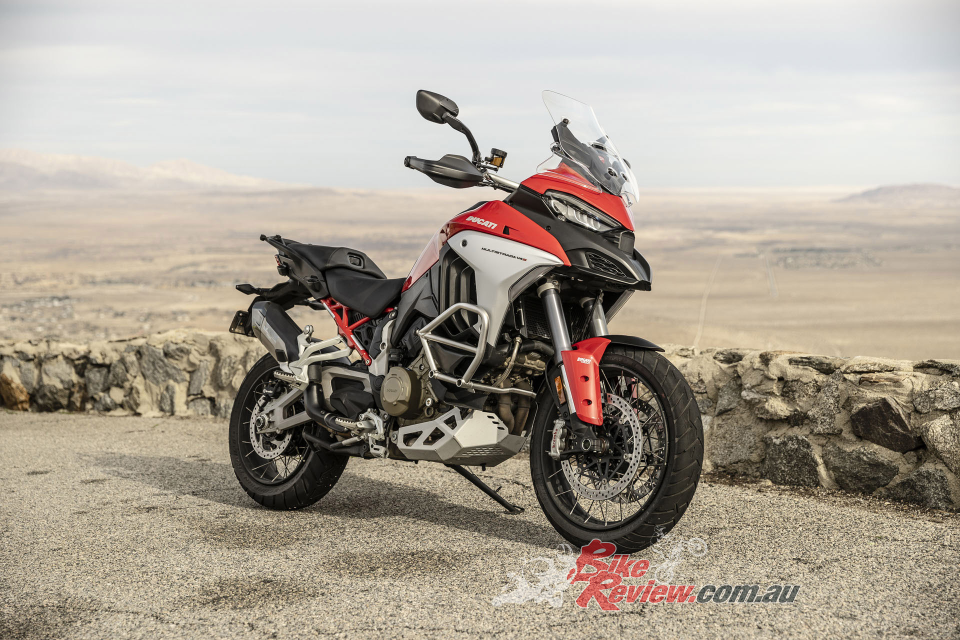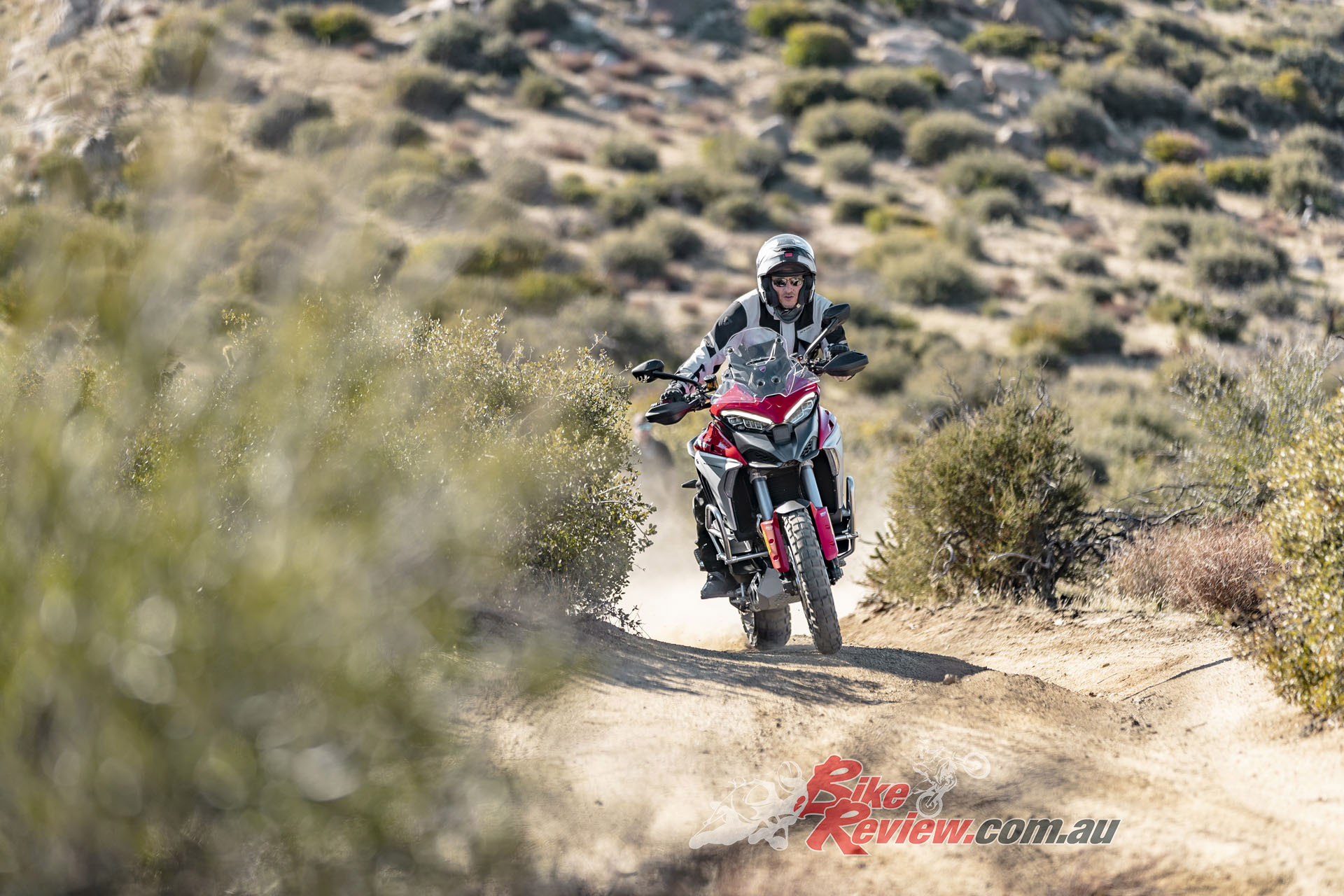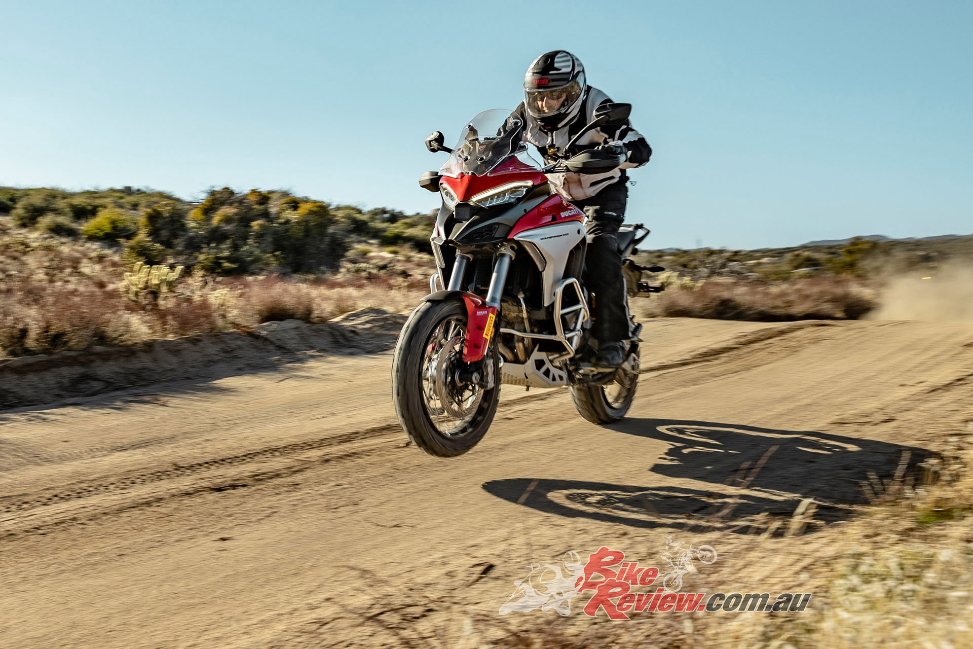 The V4 Multi is exemplary at gaining and losing speed, even off-road. The motor is remarkably tractable, pulling surely at just 20km/h in second gear to claw its way out of slippery situations. The quickshifter makes swapping gears simple and works flawlessly. Brembo Stylema brake calipers are astoundingly good, whether shedding triple-digit speeds or just a couple of km/h in the sand whoops.