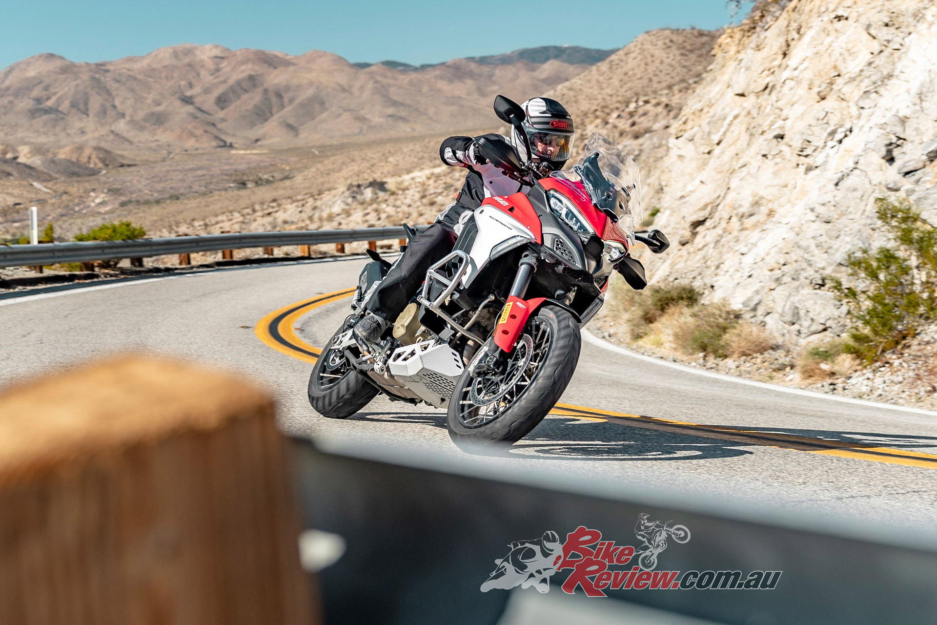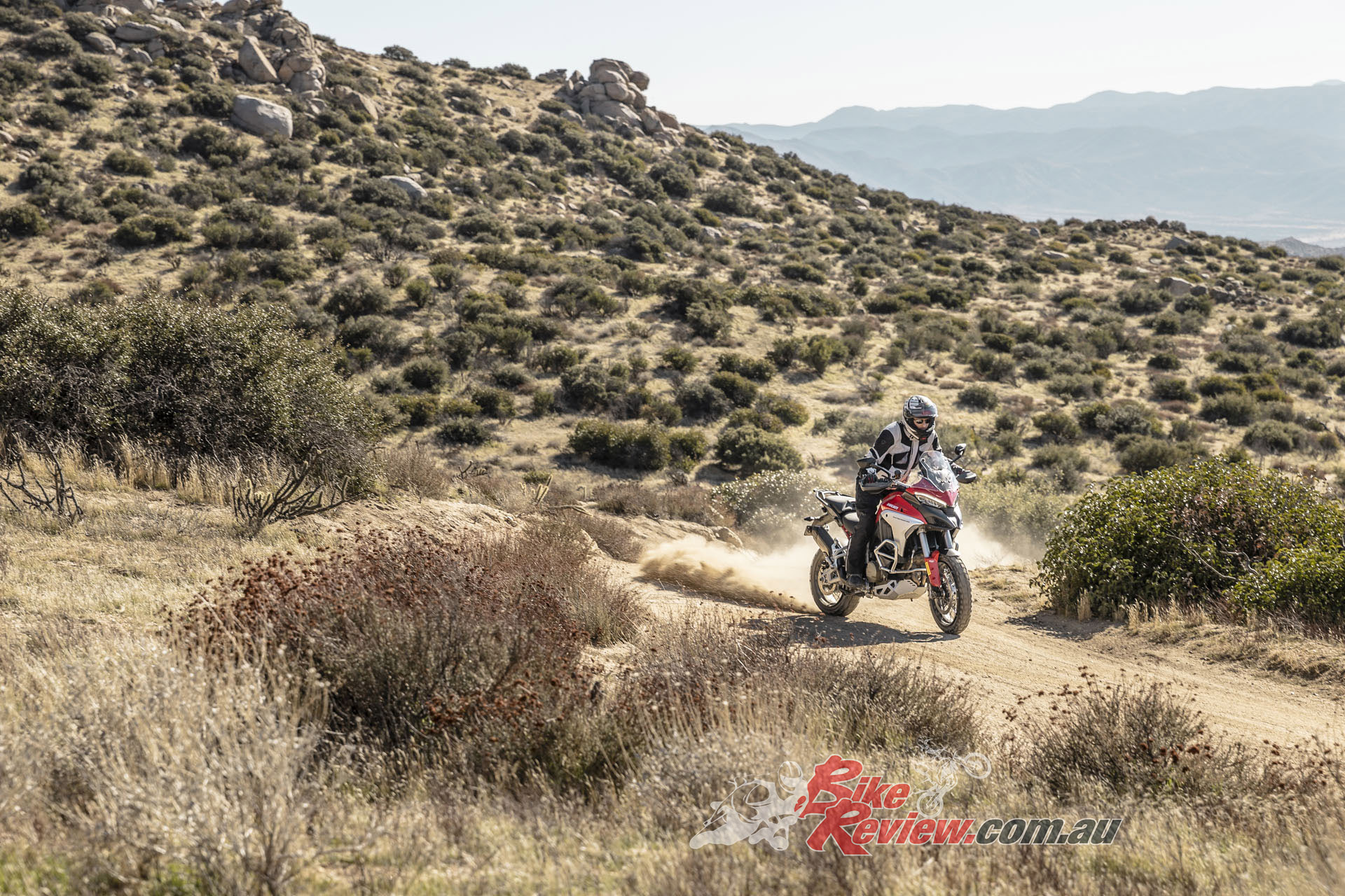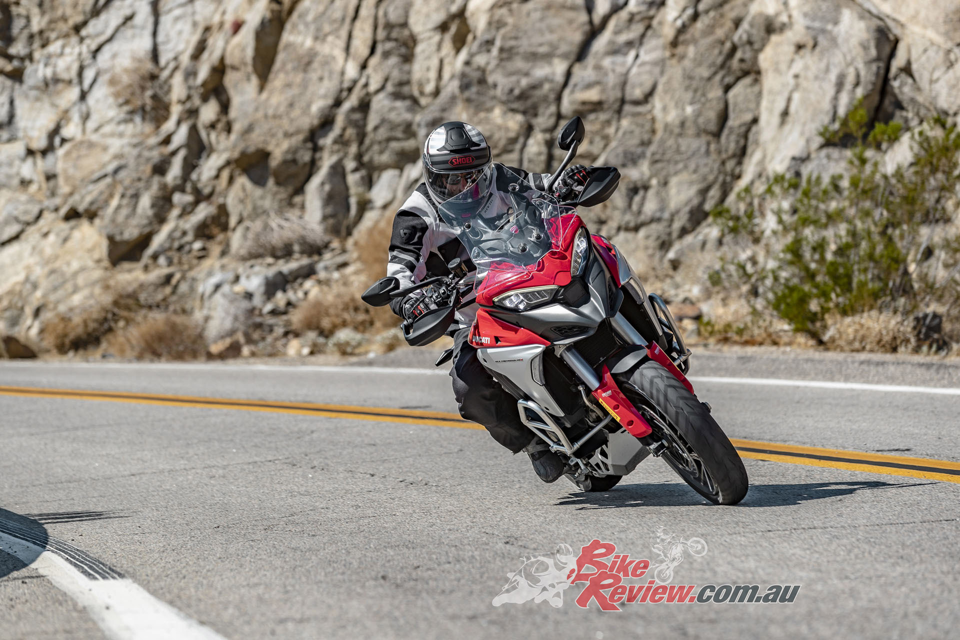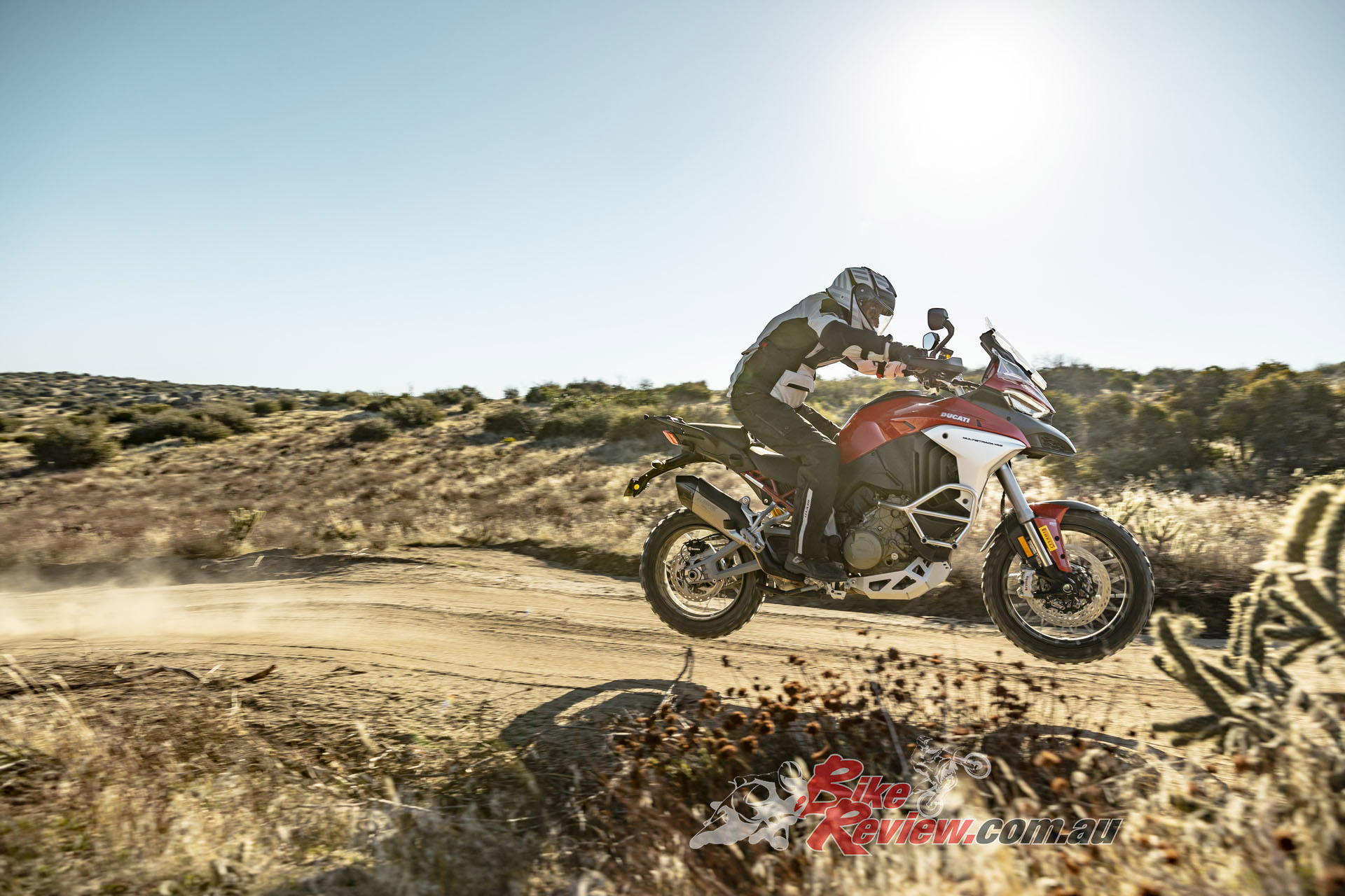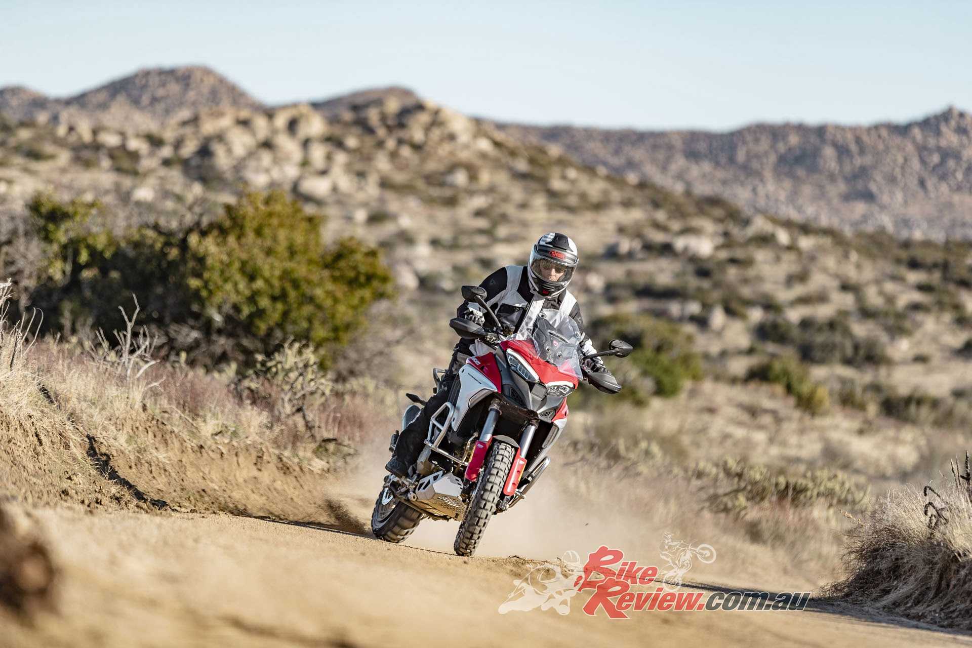 The V4 Multi is exemplary at gaining and losing speed, even off-road. The motor is remarkably tractable, pulling surely at just 20km/h in second gear to claw its way out of slippery situations. The quickshifter makes swapping gears simple and works flawlessly. Brembo Stylema brake calipers are astoundingly good, whether shedding triple-digit speeds or just a couple of km/h in the sand whoops.