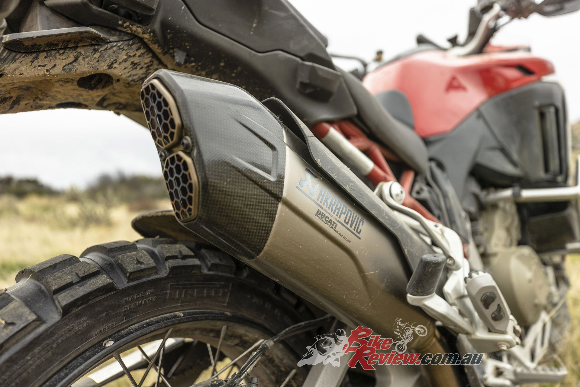To manage the potential perils of off-road riding, Ducati fitted optional steel engine guards, skidplate, and a mesh cover for the oil cooler.
