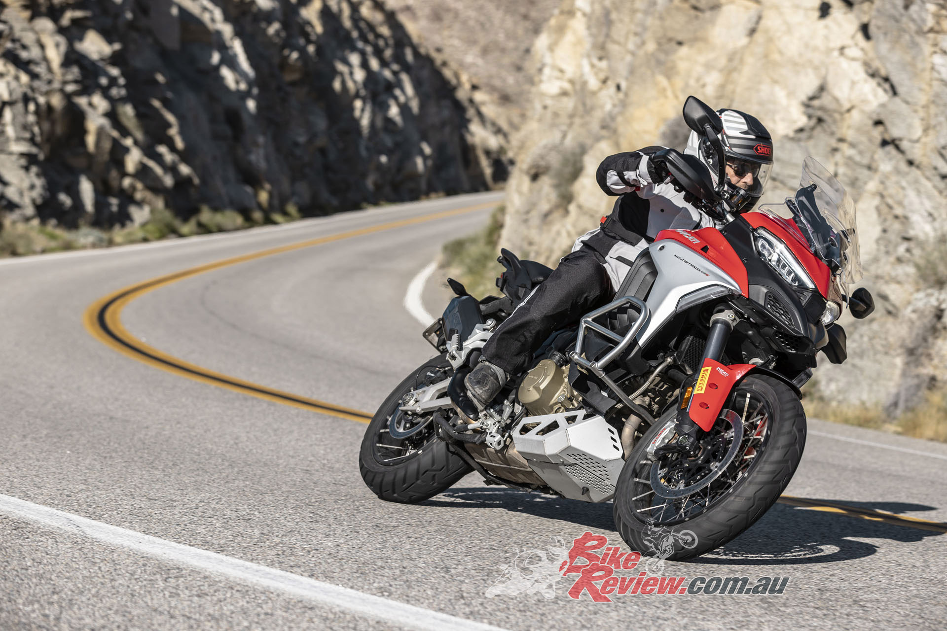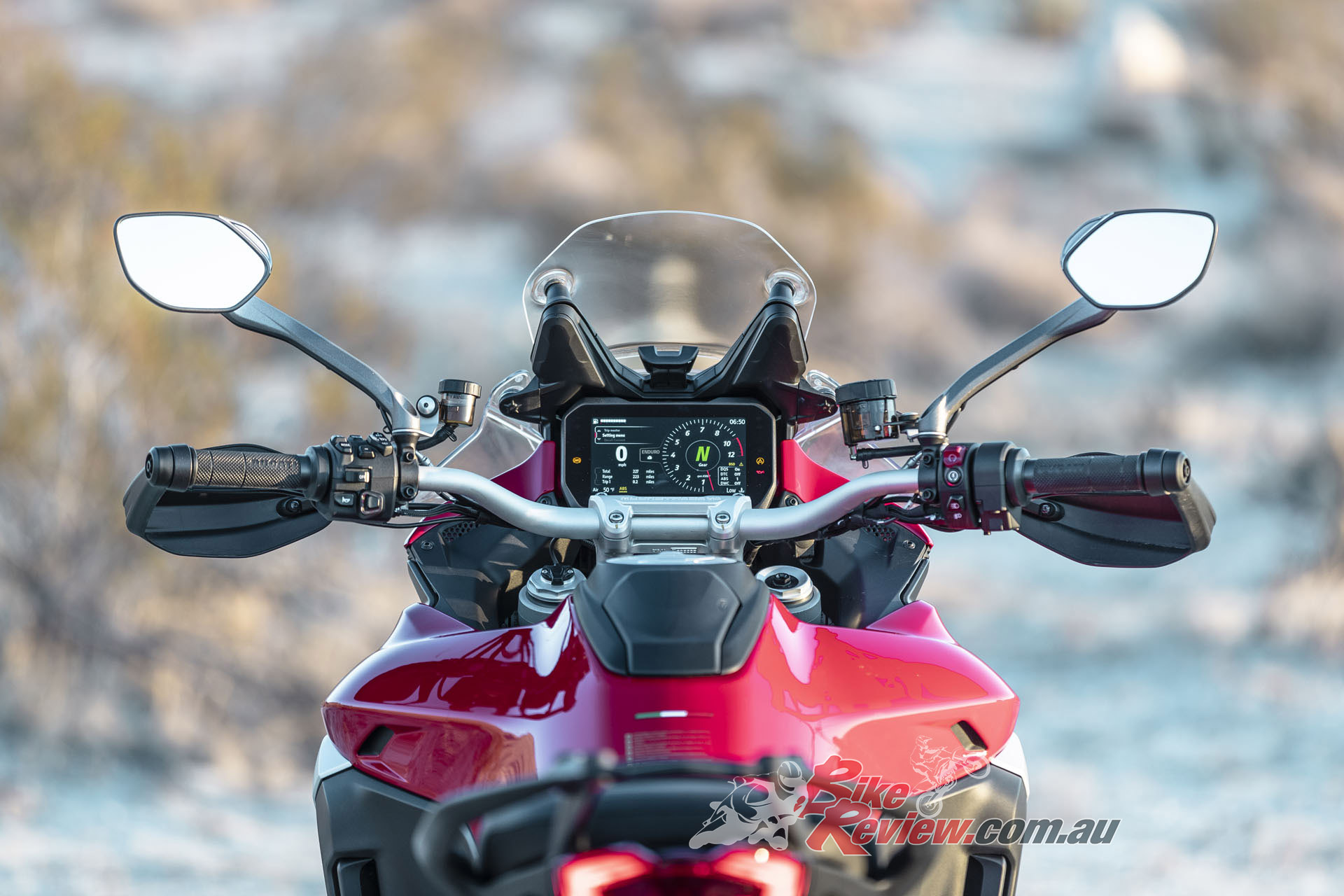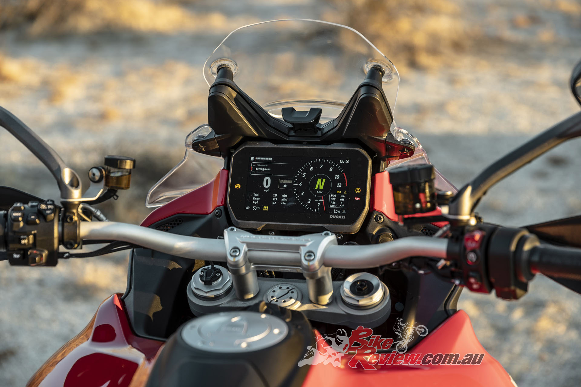 Few owners of expensive Italian bikes will tackle technical off-road trails, but it was a necessary test. Preparations included fitting Pirelli Scorpion Rally tyres to tubeless wire-spoke wheels available as a factory option. I used the Multi’s nifty seat-height adjuster to place the saddle in its low position so my legs could best reach the ground to hold up the heavy steed. A couple of button pushes and I was in Enduro mode and had set the suspension damping to a high level.