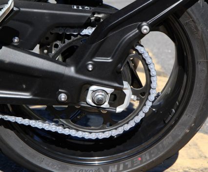 The suspension is quite good for what it is, basic spec stuff (on par with the competition). The forks are well sprung and valved, coping with everything I encountered during the test period. They hold up under hard braking, can handle a series of bumps and only felt underdone with the bigger hits. Out the back, the shock was fine for 80 per cent of the riding but when pushed that little further, the performance drop off is quick and there is a lack of spring control when pushing on, plus the bigger hits upset the back of the bike. Still, it’d get most riders through their LAMS period, no dramas.