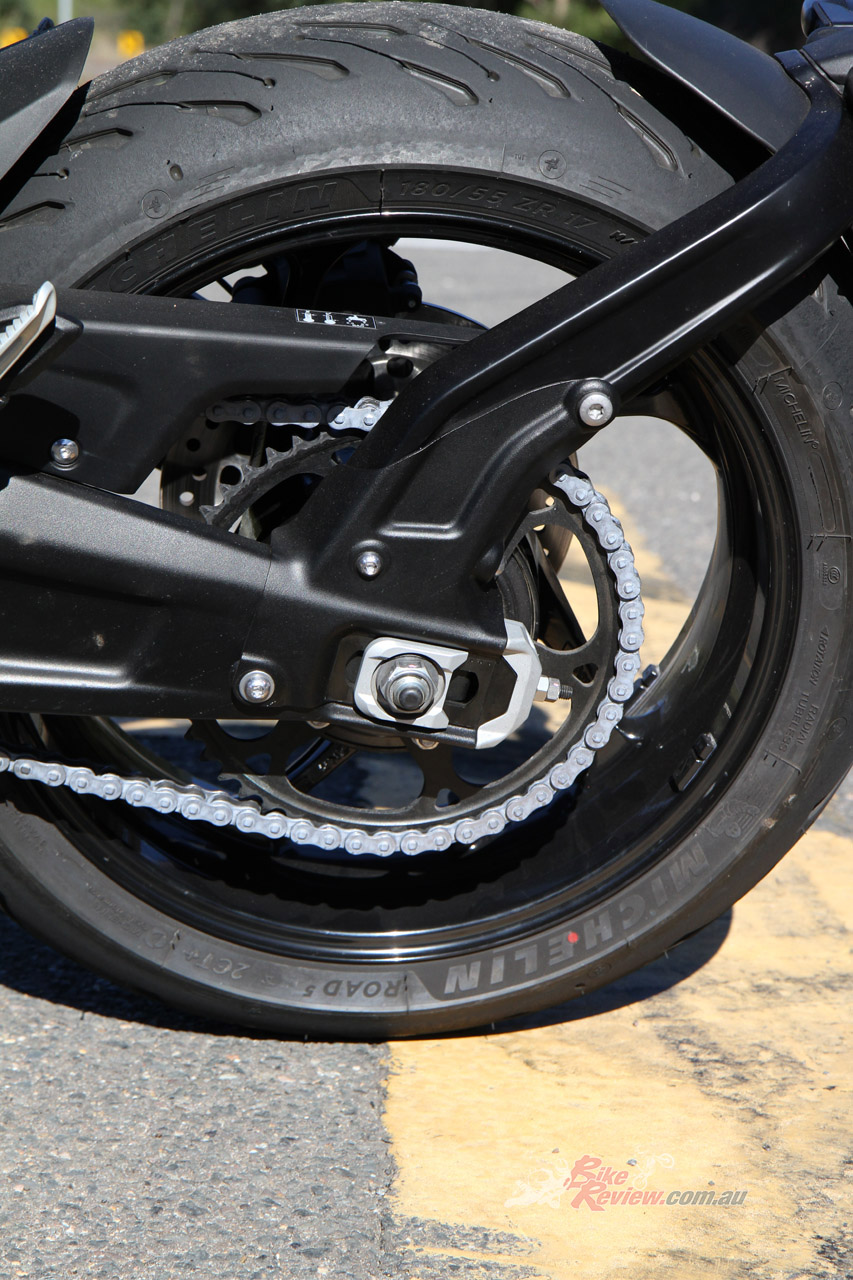 Wheels & Tyres: Cast alloy, 17 x 3.5in (f), Cast alloy, 17 x 5.5in (r), 120/70 – 17in (f), 180/55 – 17in (r).