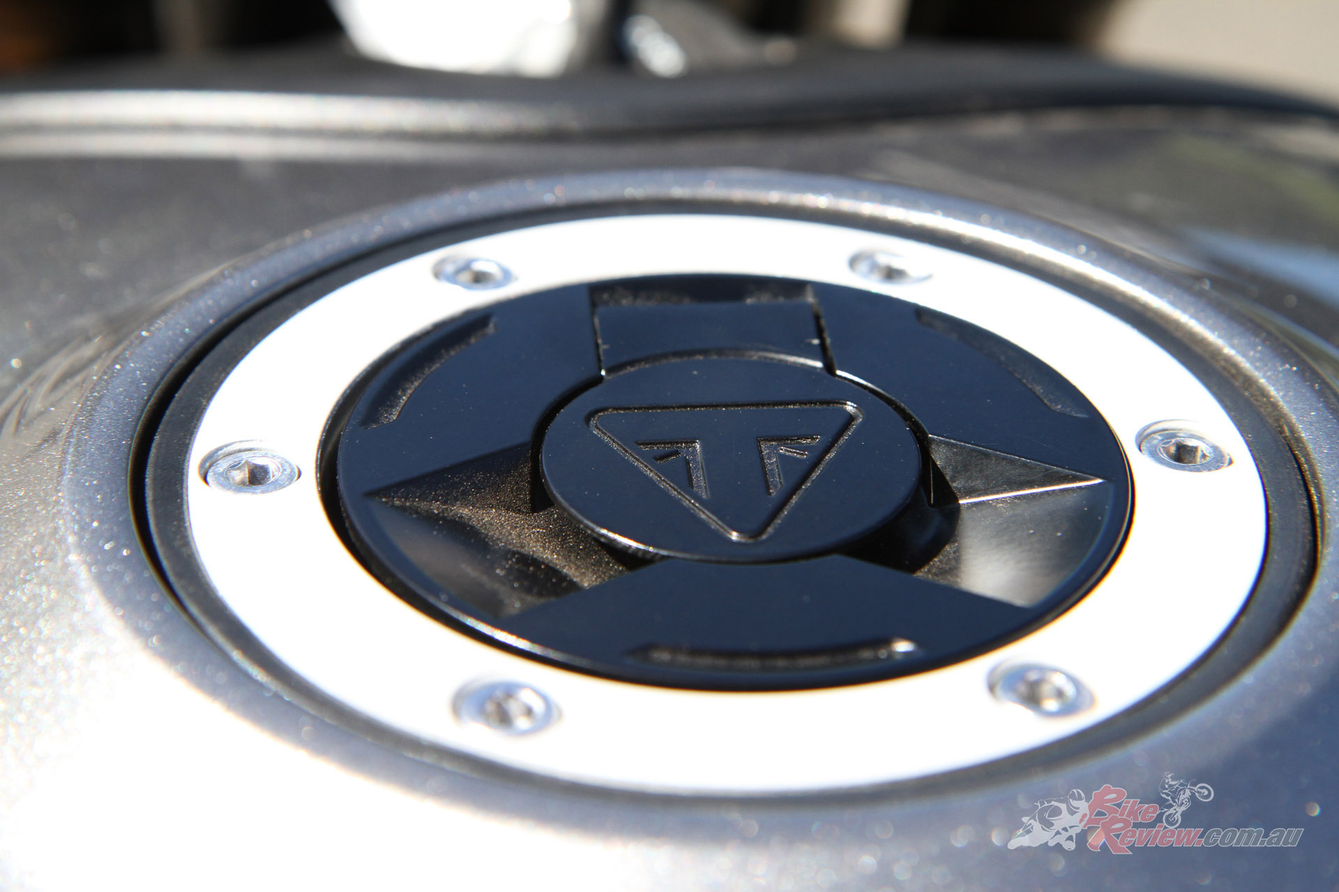 The Trident features Triumph’s signature knee cut-outs that are mimicked throughout their whole lineup.
