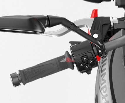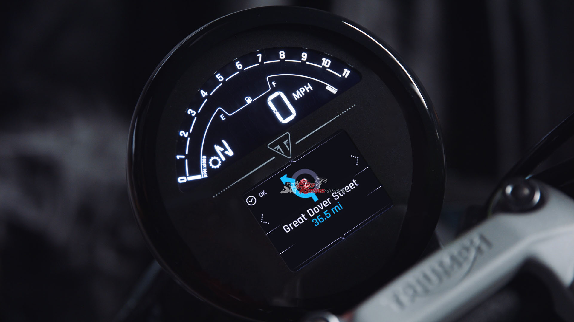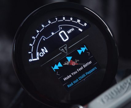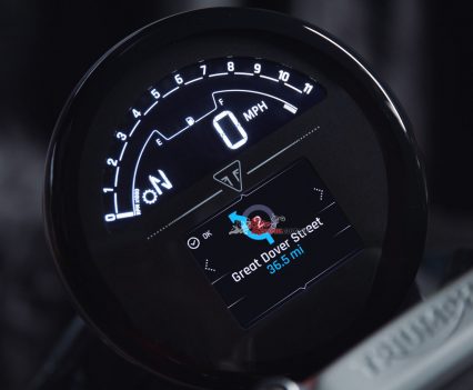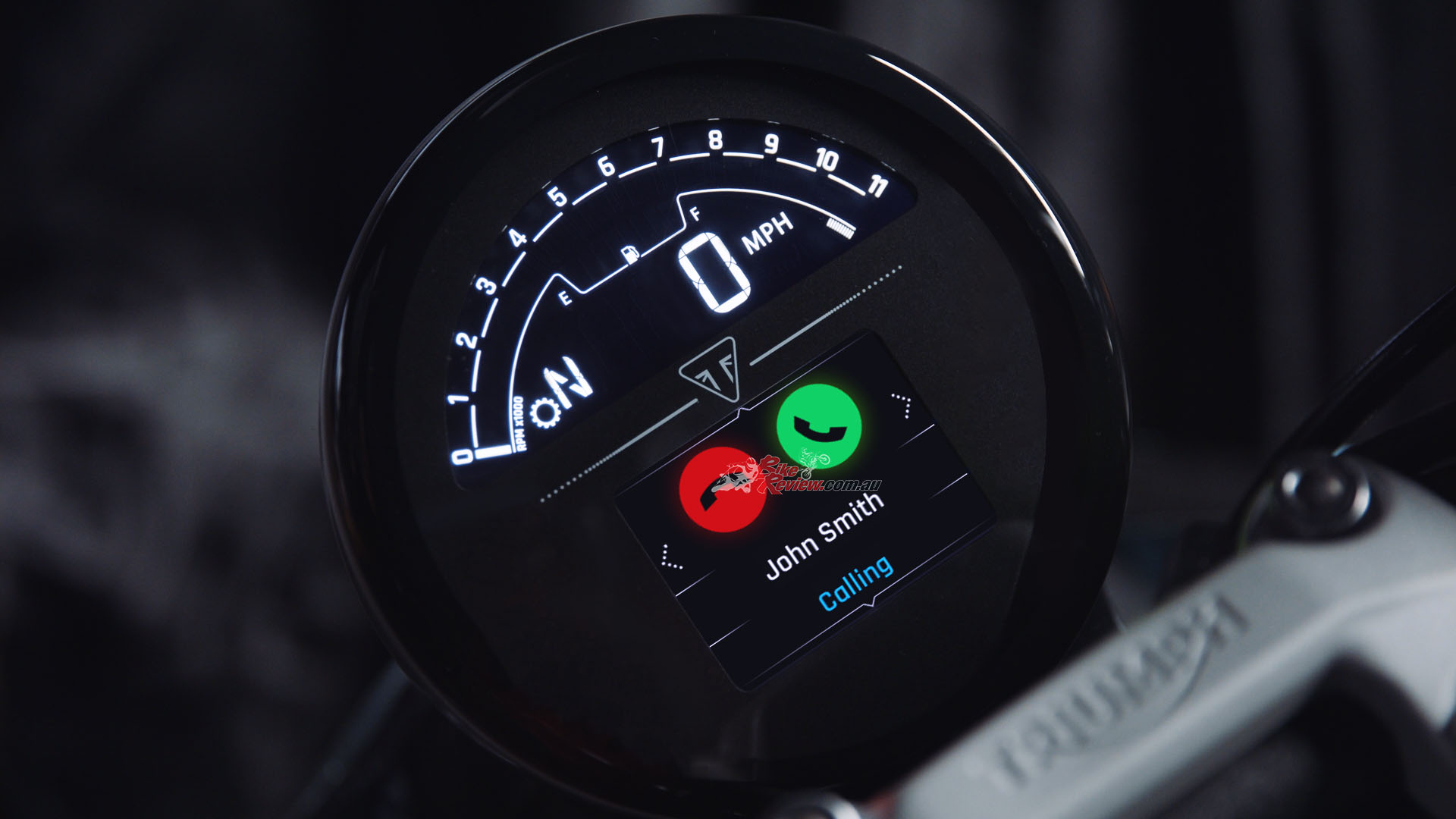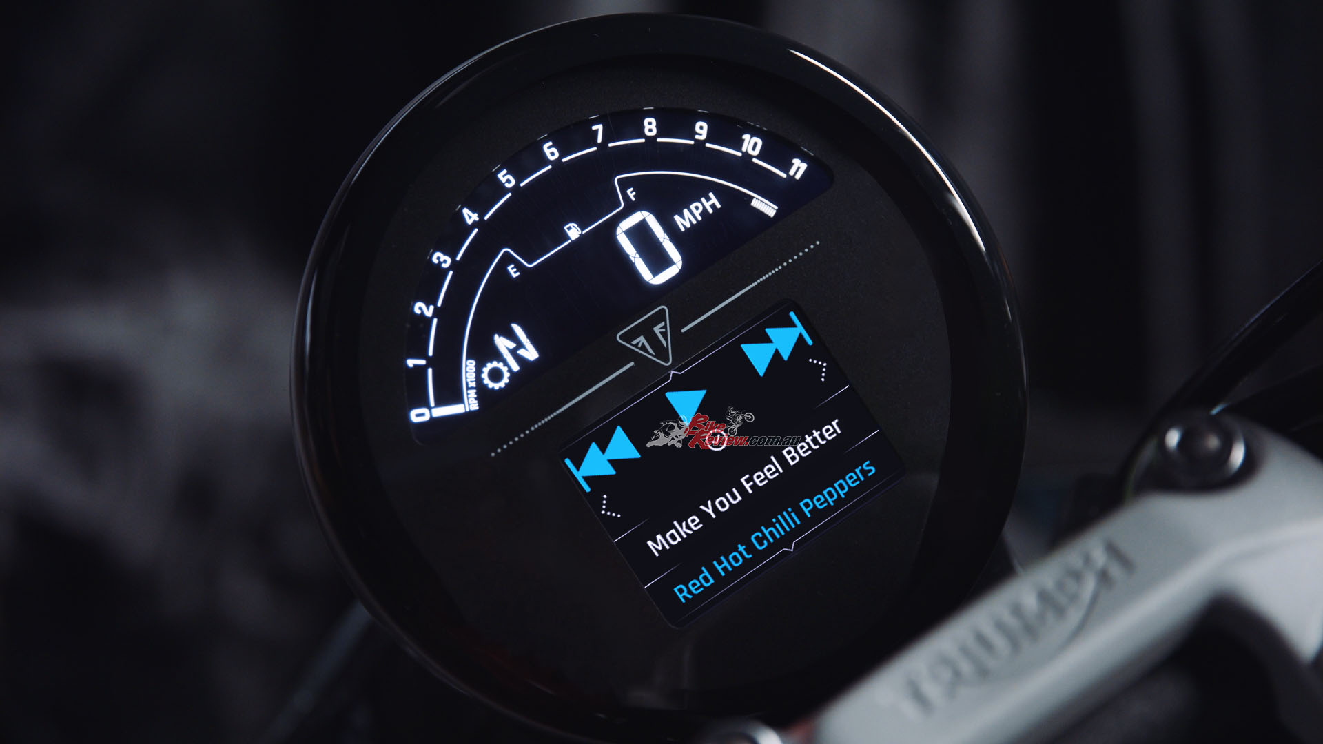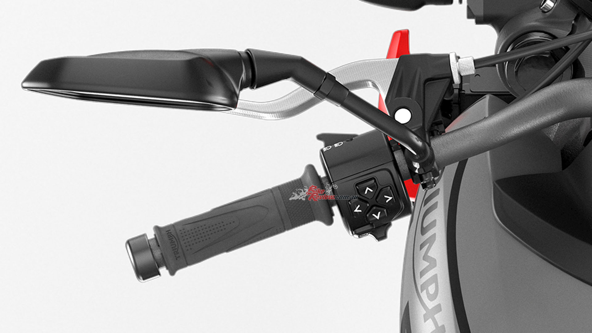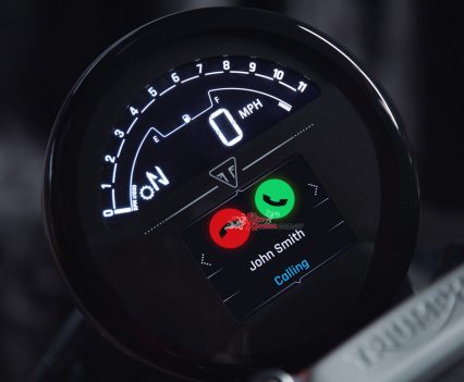 As mentioned, there is a TFT display with the left switchgear tailored to suit easy smart phone and app TBT navigation via the My Triumph app, which is a free download from the App store and allows control of music, viewing SMS and accepting or rejecting call.