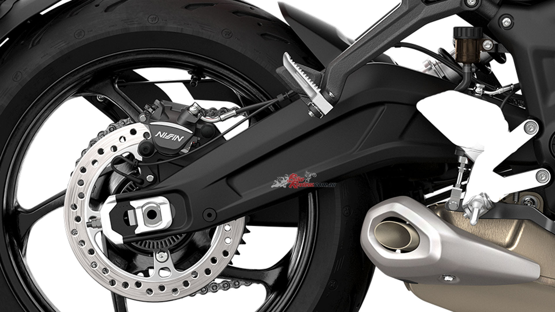 Michelin Road 5 tyres are fitted as standard and a tyre pressure monitoring system is also available as an accessory so you can keep an eye on your pressures! To complete the Trident’s set-up the braking is handled by basic two-piston Nissin sliding front calipers with twin lightweight 310mm discs and single piston Nissin rear caliper and oversized 255mm rear rotor.
