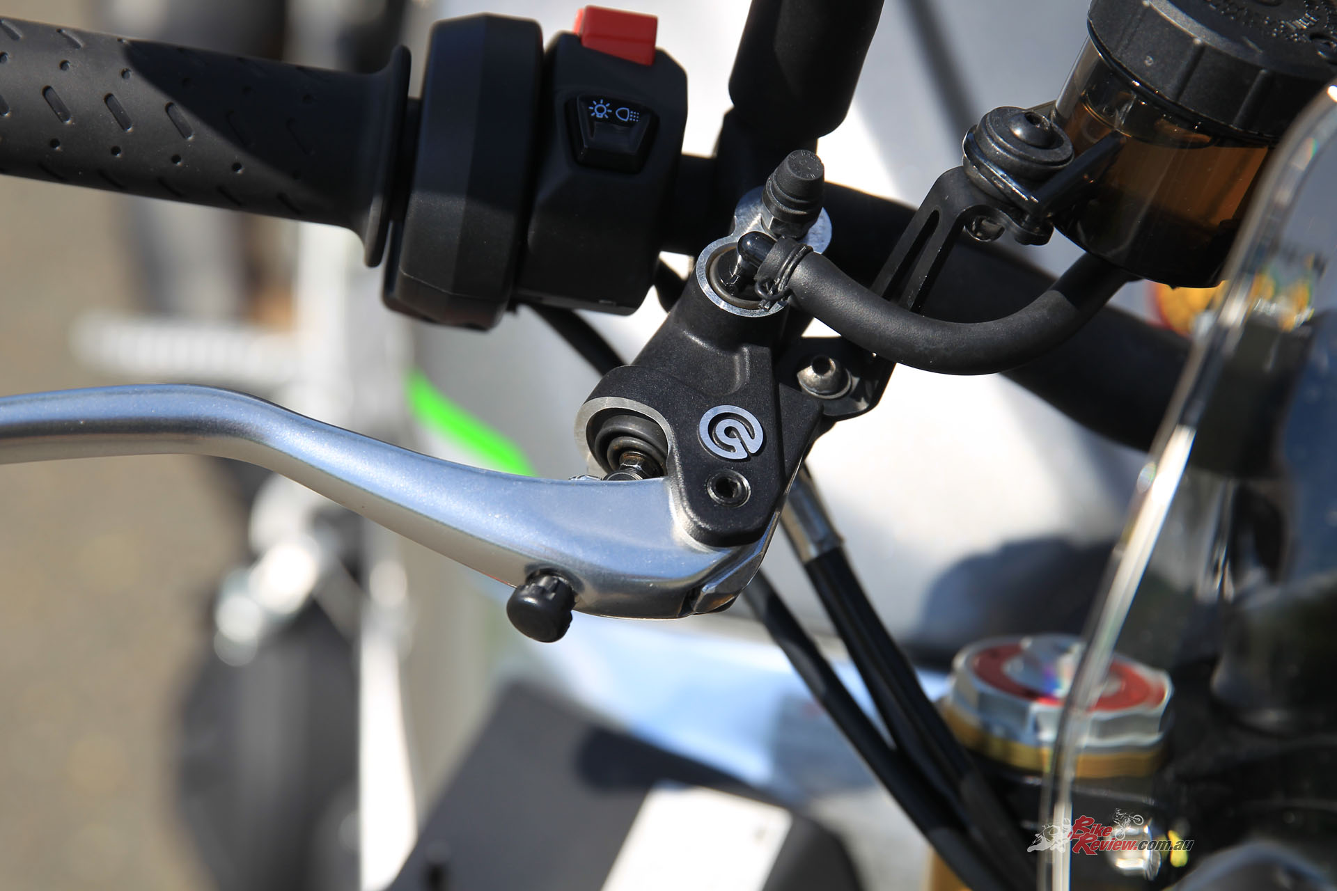 Brakes: 330mm rotor(s) (f), Brembo M50 monobloc calipers, Brembo master-cylinders, 220mm rotor (r), twin-piston Brembo caliper