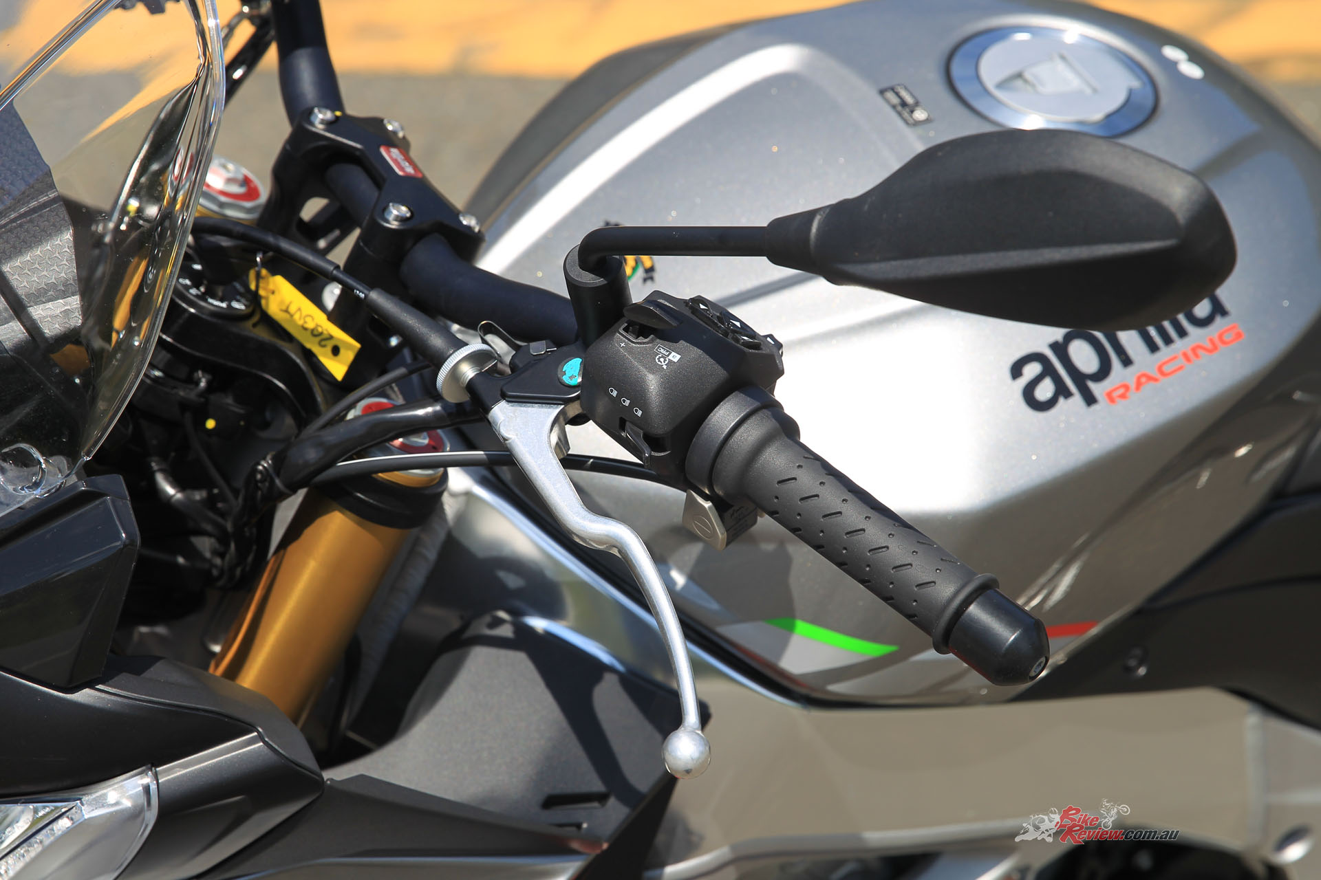 Equipment: APRC (Aprilia Performance Ride Control) IMU-based traction control and cornering ABS,6 axis inertial platform, APRC suite (Aprilia Performance Ride Control) with Engine maps (AEM), Engine brake management (AEB), Traction control (ATC), Wheelie control (AWC), Launch control (ALC), Cruise control (ACC), Pit limiter (APT). 6 riding modes (3 Road, 3 Track), all individually adjustable, and three pre-set riding modes. Cruise control, TFT colour dash, up/down quickshifter.