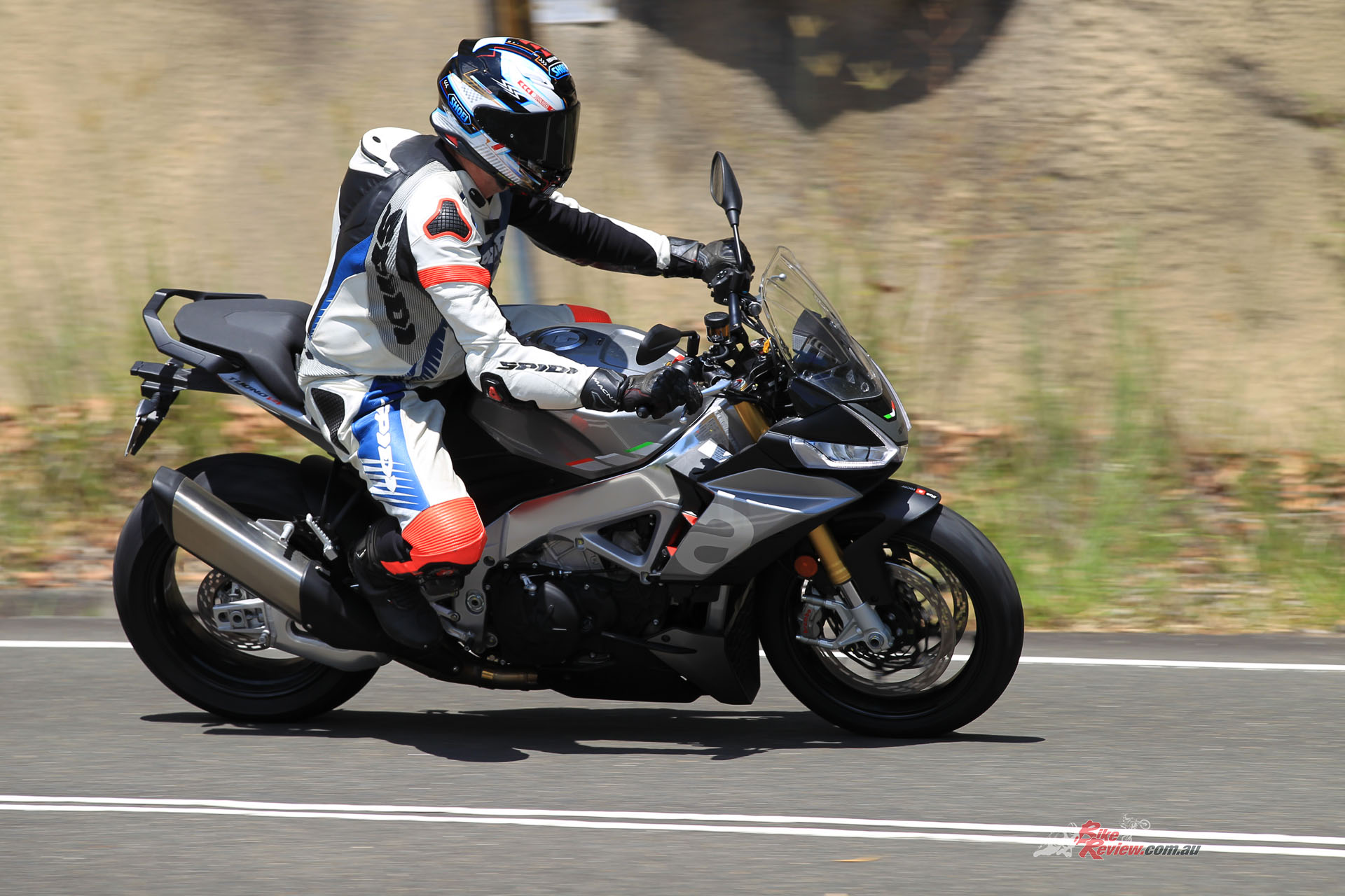There is not enough space between the rider footpegs and the pillion footpegs, causing a dangerous situation for me, with two near crashes during the photoshoot when my foot was completely stuck and I ran wide onto the wrong side of the road. Once I was hyper aware of the situation, I rode with my feet sticking out to stop the heel getting caught, but then my toes hit the road in the corners. I could not ride on the ball of my feet on the Tuono V4, which had a negative impact on the handling of the machine.