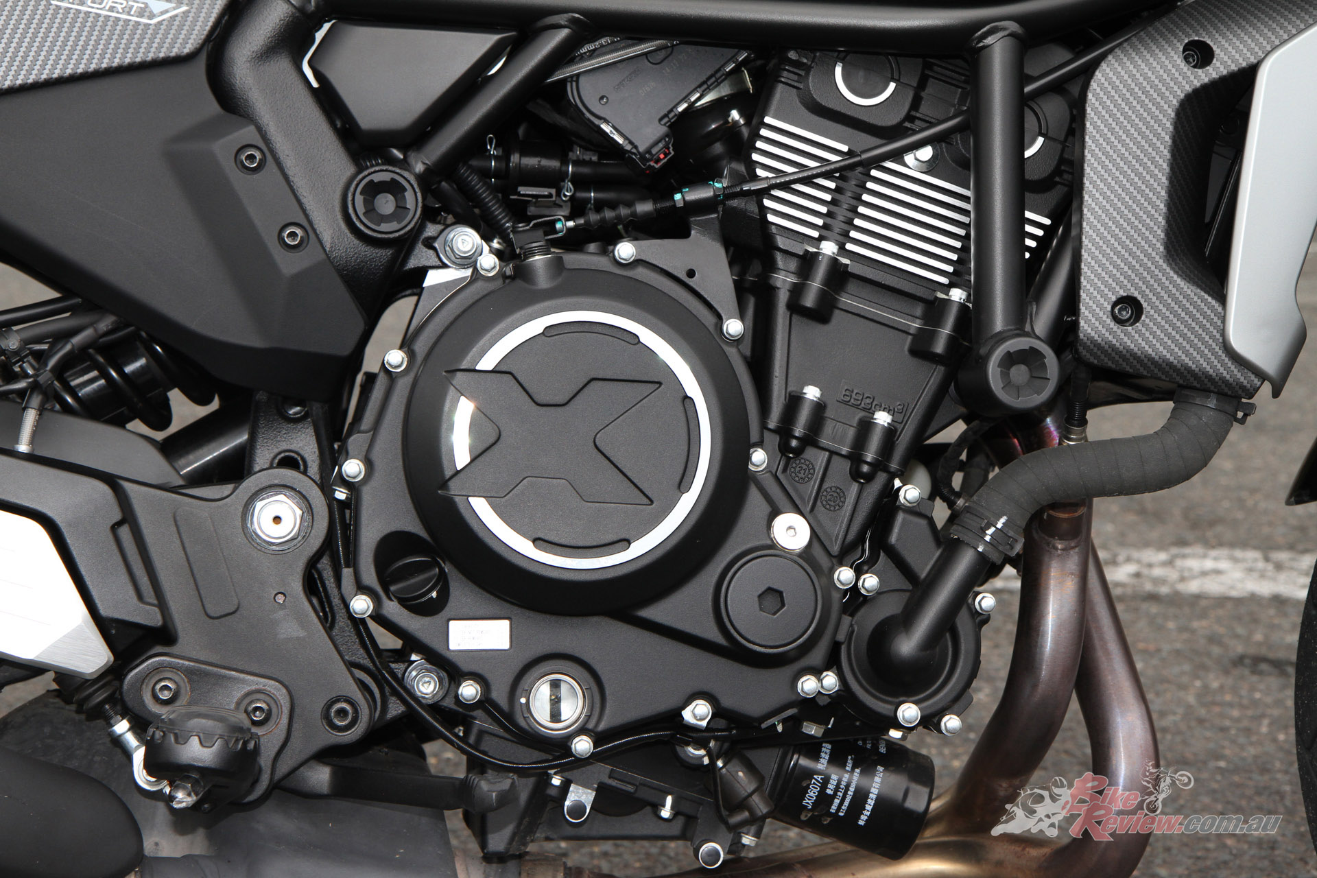 The 700CL-X uses the a similar powerplant to the 650MT with a longer stroke, bringing the capacity up to 693cc.
