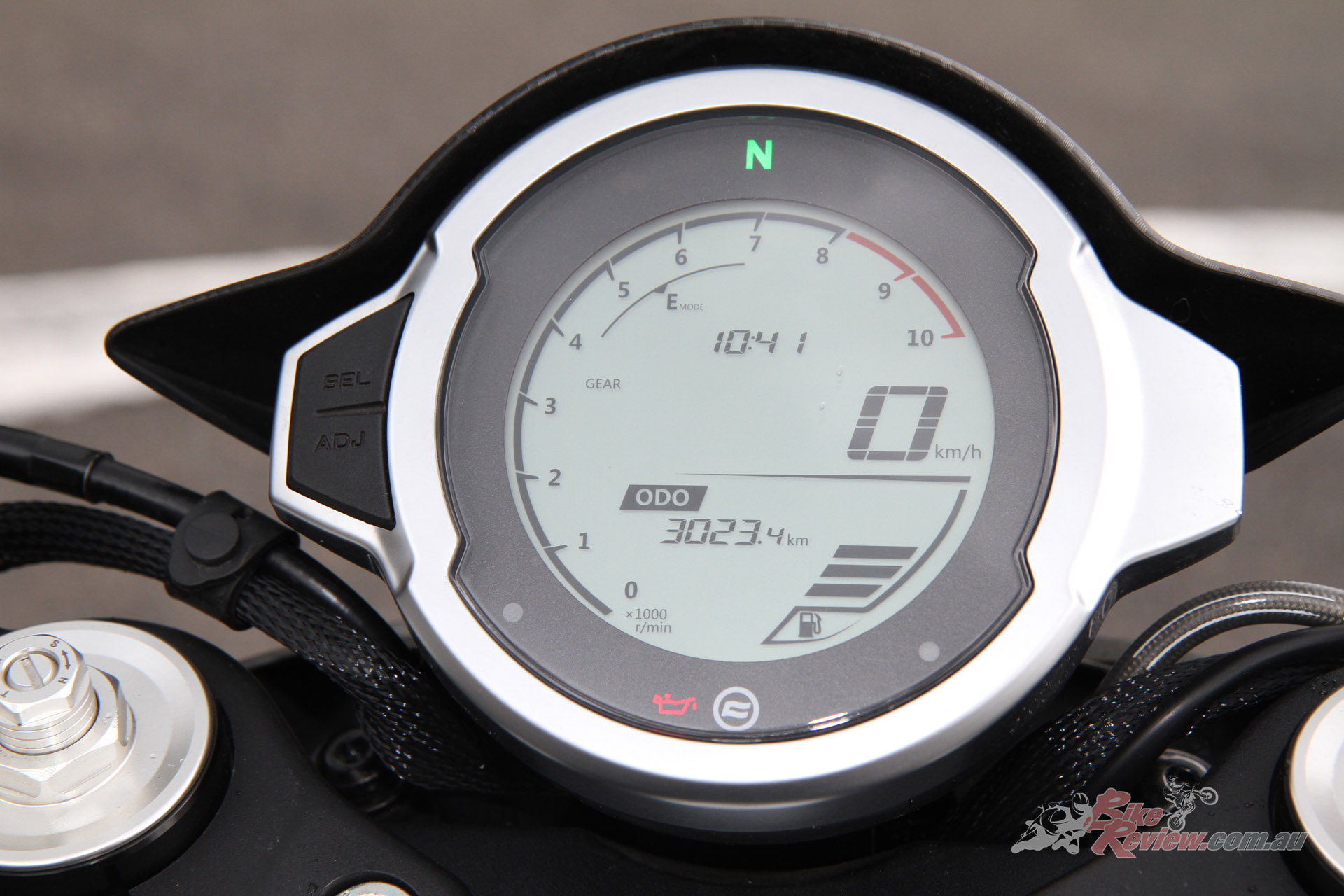Electronics: Round 75mm retro classic-style LCD, Economy and Sport modes, cruise control, USB charging input, TCS and ABS