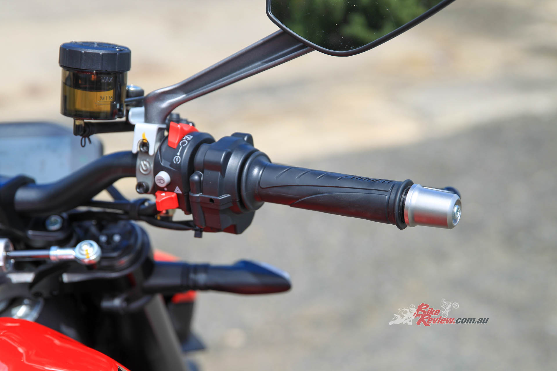 The wheelie control works excellently, it’s one of those things you don’t realise how much a bike wants to throw you off the rear until it is switched off. It allows for more than enough front wheel lift to experience the top-end power of the Superquadro without watching the bike cartwheel down the road without you.