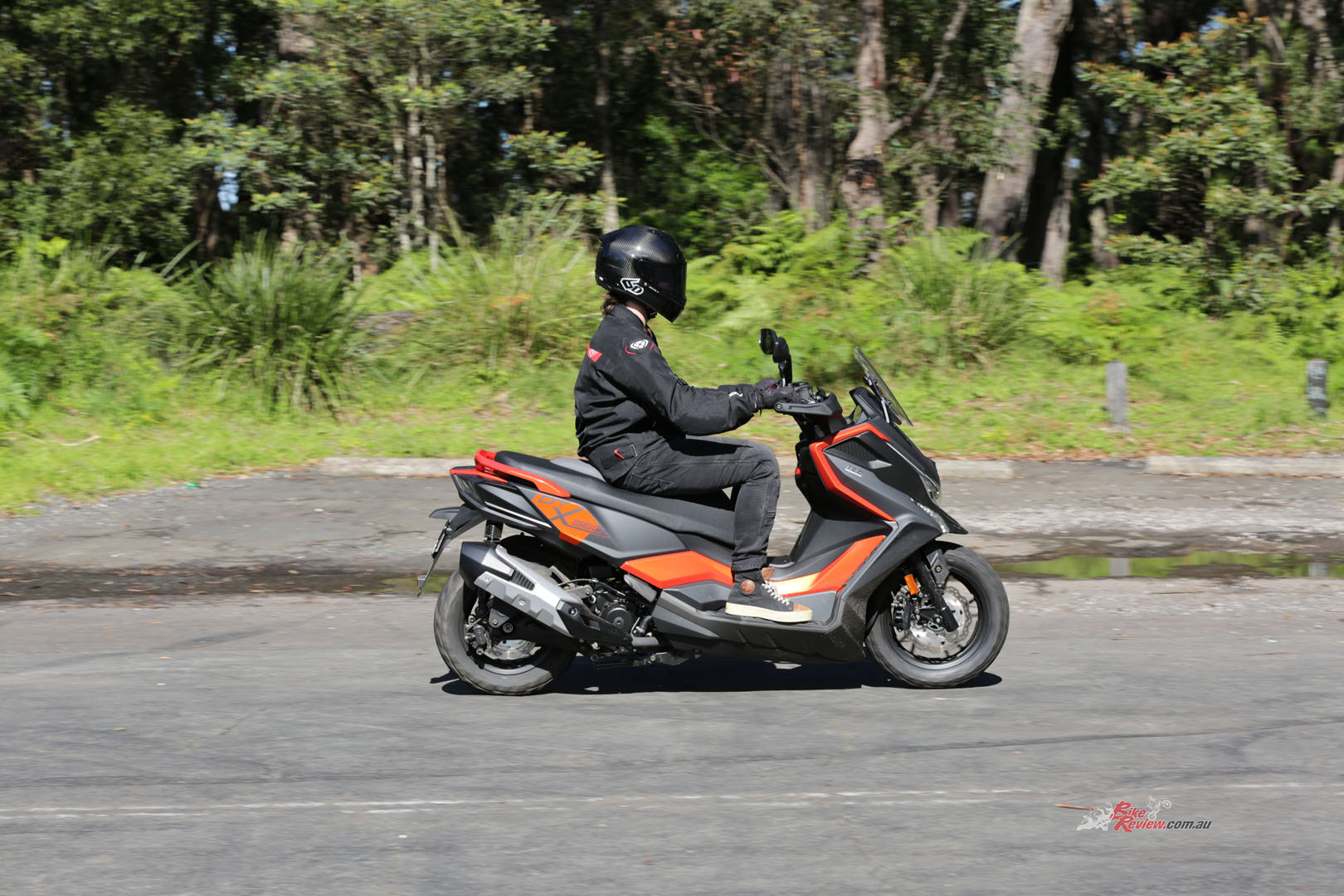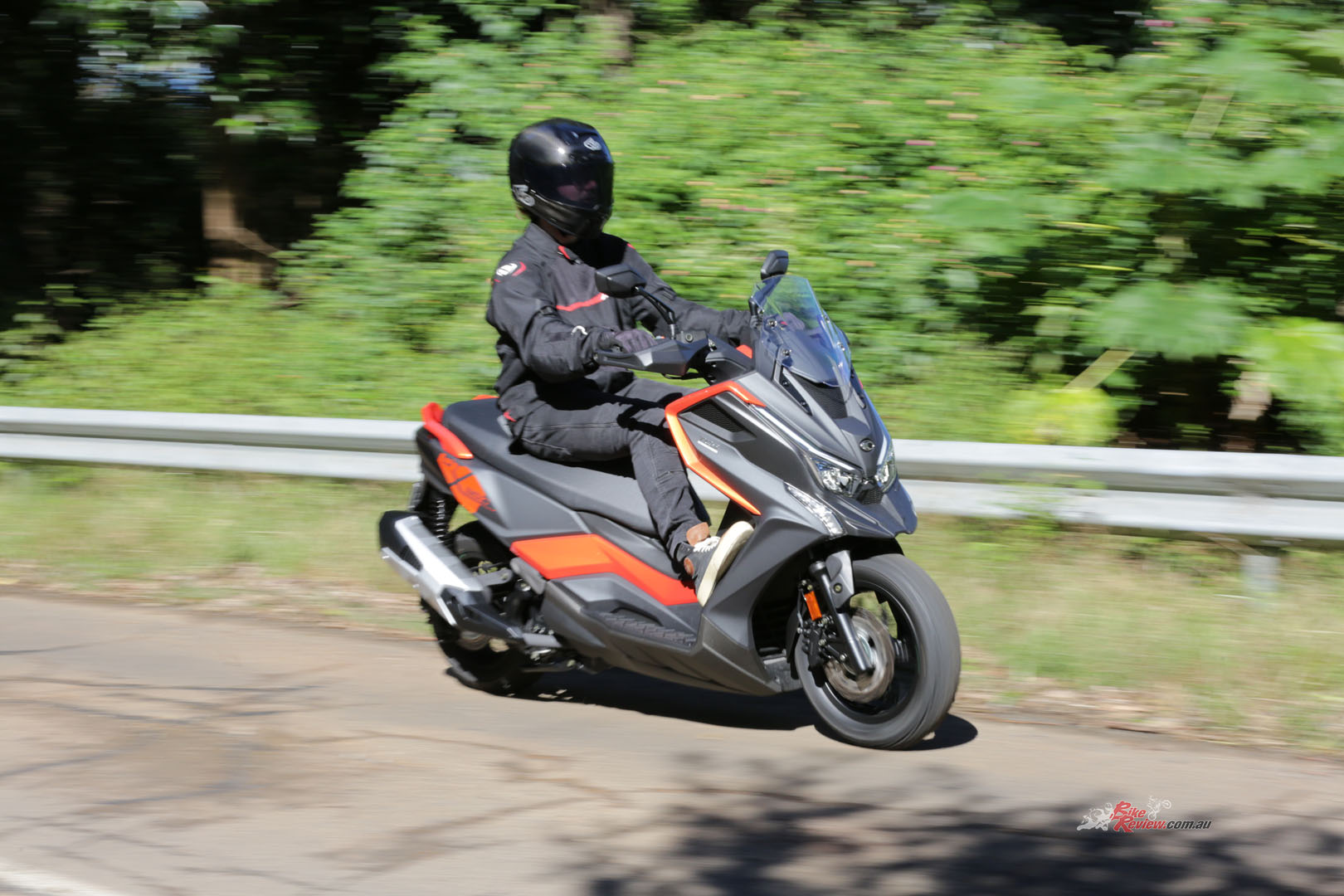 Heading down the freeway and the KYMCO is more than compliant, it would’ve been awesome to have a cruise control system as the scooter just glides along the road, no rattles, coughs or complaints from the 321cc at all, just a few typical single-cylinder pops coming off the throttle…