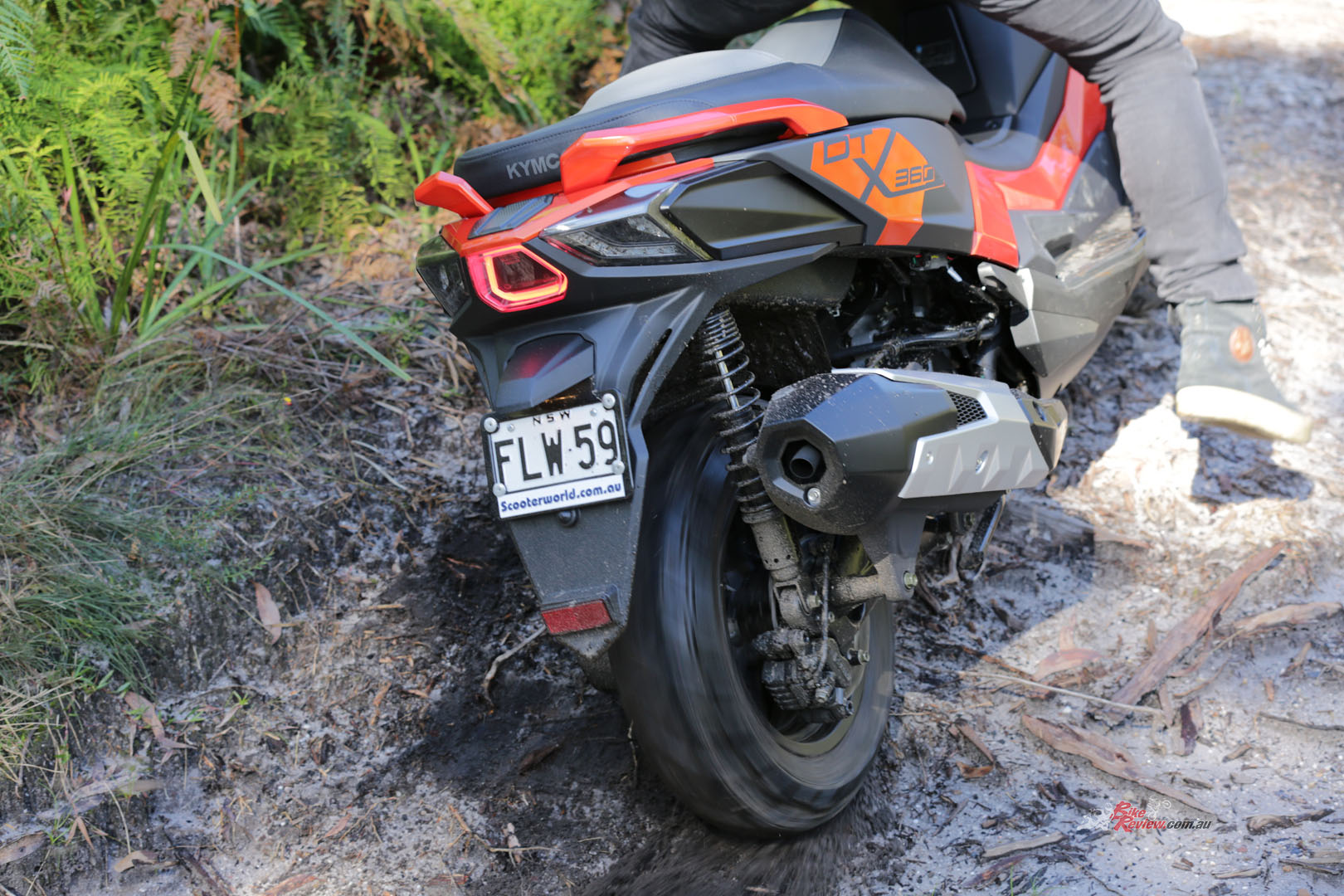 In the pursuit to see what the DT X360 couldn’t do, I decided it was time to see how it handled something tougher. I took it down a slow trail and promptly got bogged in some wet clay/sand. The dual-sport tyres were no help in this situation as the downfall of a scooter being an off-road vehicle became clear. All the weight is at the rear, when it comes time for the tough stuff, it’ll just sink and the 13-inch rear wheel will be of no help to your situation. Weighing in at just under 200kg, I had to get some help to pull it out. Once it was out we were good to go again.