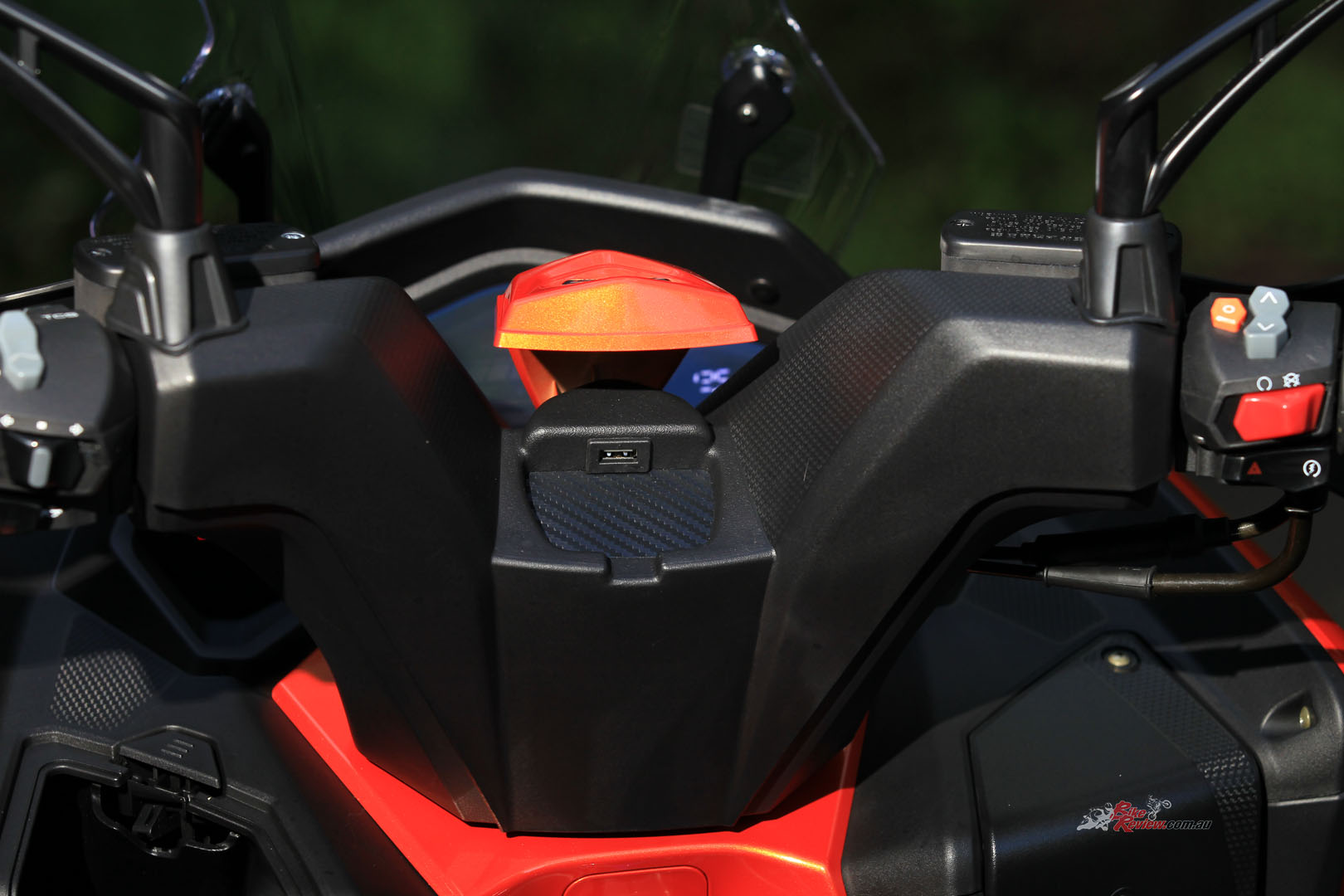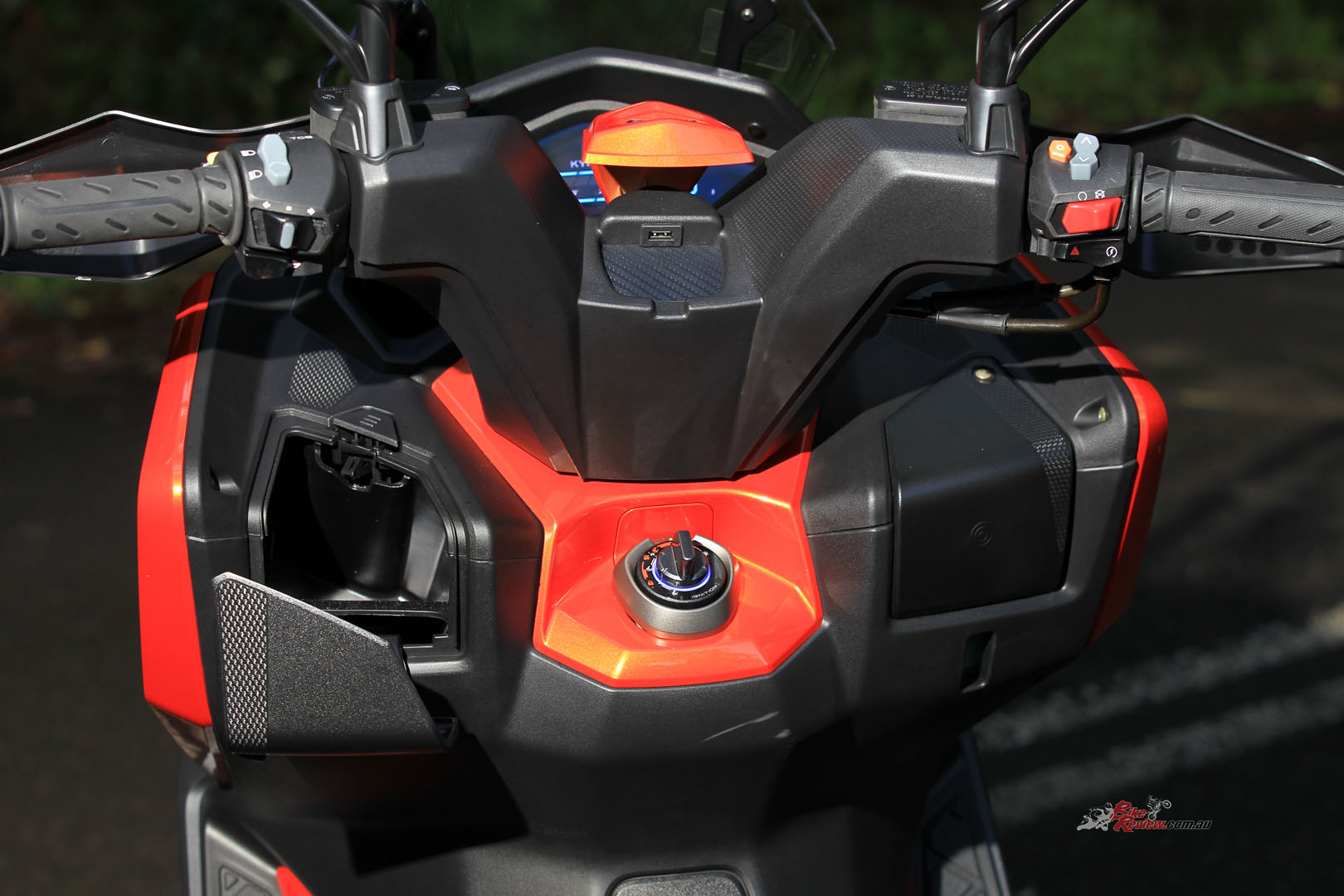 The KYMCO features a simple LCD dash, it’s a bummer they didn’t opt for the TFT dash with turn by turn navigation seen on the 2021 Downtown 350i, it would’ve made me see some more value for money with the DT X360. Other nifty gadgets include two USB ports (one hidden under the logo in the centre of the handlebars) and plenty of buttons to push. I will admit, when I was riding home, I noticed that my hazard lights were on and I couldn’t work out why. I soon realised that there is almost no resistance on the switch for them and it’s in the prime position to accidentally click on while riding. I did this at least twice every time I rode…