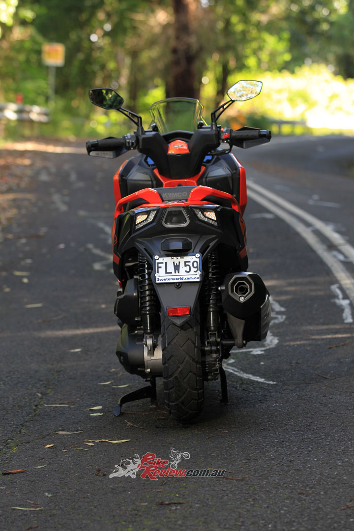 Looking at the 37mm forks with 110mm travel at the front and twin shocks with preload adjustment and 108mm travel, it was clear that KYMCO really needed to give the setup more travel to justify its “adventure crossover” title. On the road it was already pretty stiff, but when it came time to take it off-road, it wasn’t ideal at all. Looking over the photos from a photoshoot we did on a dirt road and you could see the rear wheel coming off the ground mid corner on small bumps. Some sort of suspension upgrade would’ve been nice.